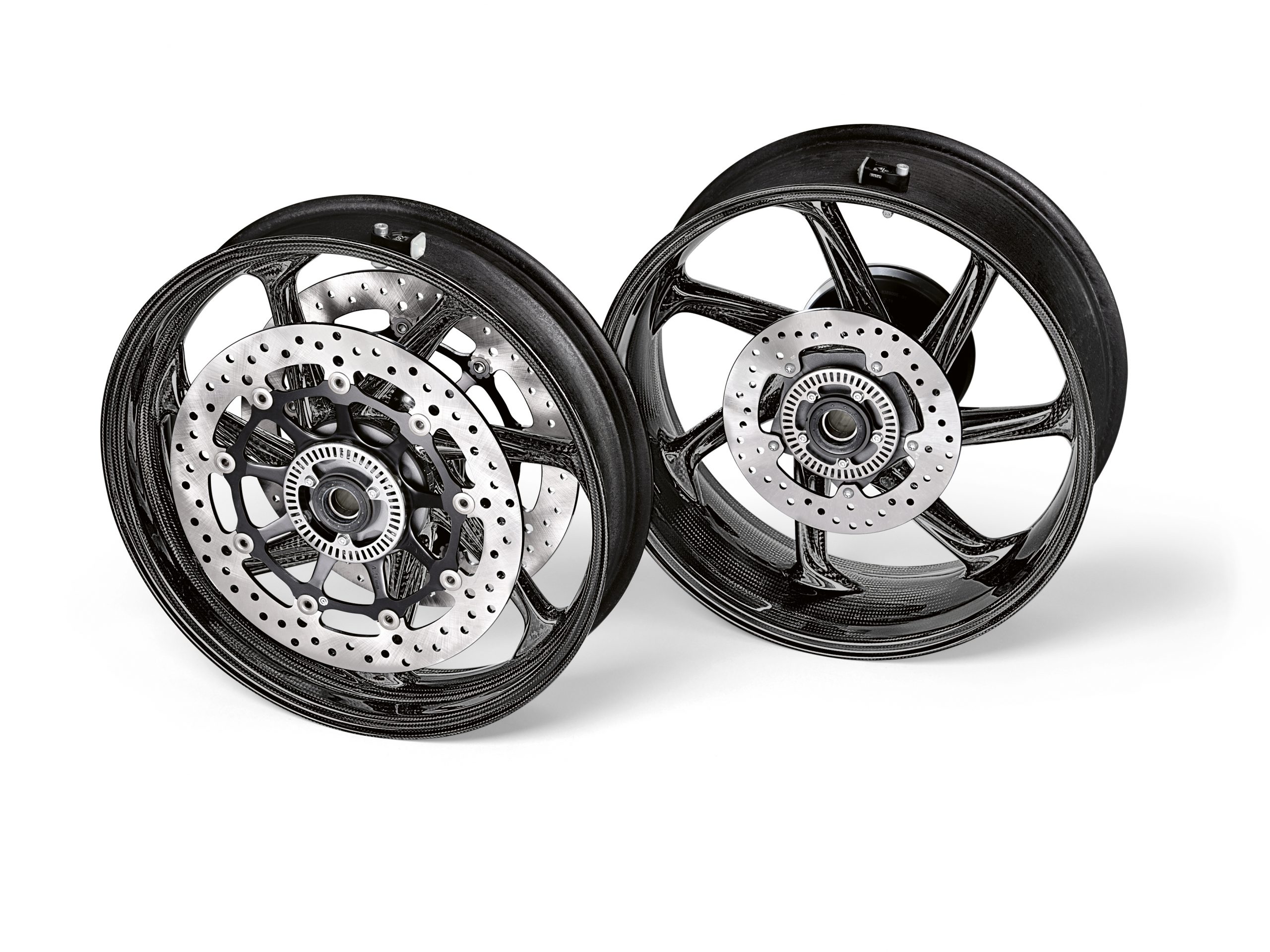 Las llantas M Performance de fibra de carbono para la S 1000 RR son, en total, 1,7 kg más ligeras que las llantas de aluminio de serie, que ya pasaron por una reducción de peso de 1,6kg cuando los dos modelos se presentaron de nuevo el año pasado. Todas las piezas, como los discos de freno de 5 mm de grosor (de serie: 4,5 mm), los anillos del sensor, los cojinetes de las ruedas y las válvulas de control de presión están incluidos en el set de rueda completa. Las llantas de fibra de carbono M Performance están disponibles desde el 1 de agosto de 2020.