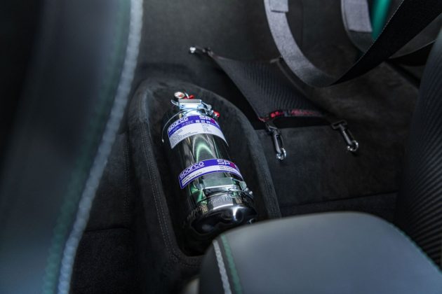 Pasamos al interior del vehículo, claramente inspirado en la competición. Entre los aspectos más destacados se incluye tapicería completa de Alcantara® en el salpicadero, los paneles de las puertas, el techo, los montantes laterales y el revestimiento central de los asientos. Este preciado material proporciona al conductor el agarre adecuado y reduce los típicos reflejos del salpicadero y otros componentes de plástico. Aún más extenso es el uso de Alcantara® en la versión GTAm, donde la supresión del banco trasero deja sitio para un «contenedor» totalmente revestido, que aloja molduras específicas diseñadas para albergar cascos y un extintor. Las nuevas aplicaciones de fibra de carbono mate dotan al interior de una sofisticación técnica y estética, que en el GTAm se diferencia no solo por la presencia de la barra antivuelco y la ausencia de los paneles de las puertas traseras, sino también por la apertura de las puertas delanteras con los denominados «pull loops» en lugar de la manilla, con colores a juego con los cinturones SABELT de 6 puntos, otro toque típicamente inspirado en el mundo de las carreras.