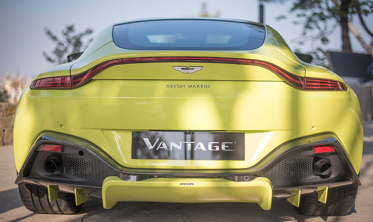 El diseño del nuevo Vantage se basa en el nuevo estilo de lenguaje del Aston Martin DB11. Se mantienen la esencia de la estética, como la típica calandra Aston Martin desde los años 50 y que en este caso es una enorme entrada de aire en la parte inferior, o bien los finos pilotos traseros que recuerdan a los DB10 y DB11.
