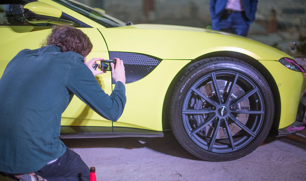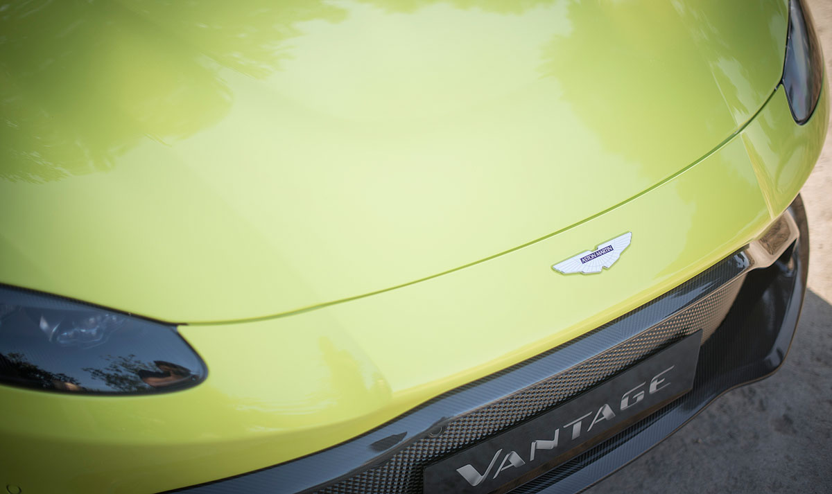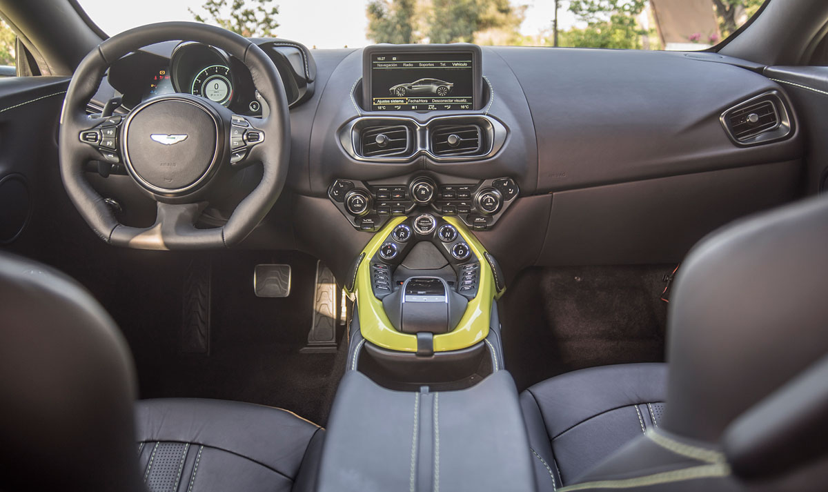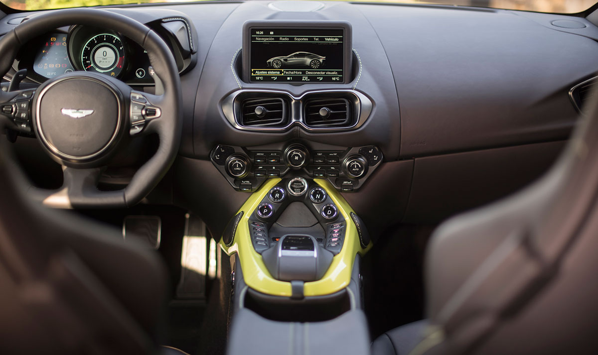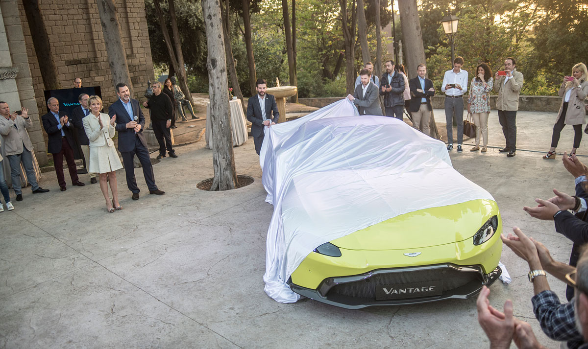 La unidad del modelo que se presentó era del mismo color que el vehículo que pudimos ver en el reciente Salón de Ginebra, concretamente en color New Vantage Lime Essence.El nuevo Aston Martin Vantage es mucho más que un nuevo modelo deportivo para la firma de Gaydon. Este biplaza con motor V8 biturbo de 510 CV muestra el nuevo estilo de modelos de la firma británica, siendo a la vez, el digno sucesor del exitoso Aston Martin Vantage de 2005 (Se vendieron 25.000 unidades en sus 12 años de vida comercial).