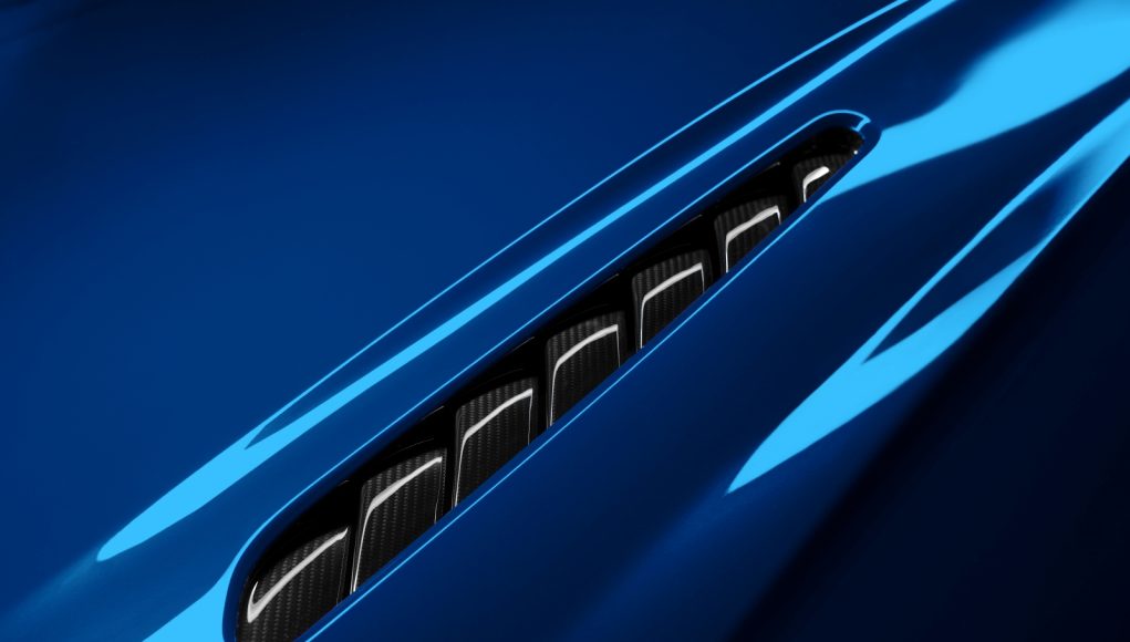 El divisor baja y ensancha ópticamente el DB12 S, dándole un aspecto más asertivo, y al mismo tiempo generando carga aerodinámica y guiando el flujo de aire hacia y alrededor de los pasos de rueda delanteros para estabilizarlo y reducir aún más la elevación. La rejillas del capó, con acabado en Gloss Black o fibra de carbono Twill 2×2 opcional, ayudan a extraer el aire caliente del motor V8 de 4,0l en configuración «hot-V», al tiempo que rematan el aspecto más agresivo de la parte delantera del DB12 S.