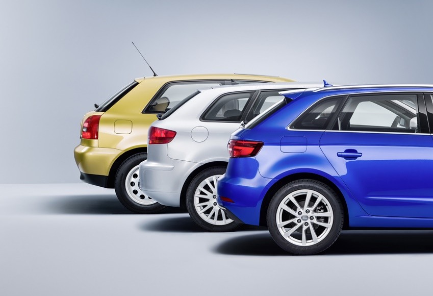 La parrilla delantera que se siguió utilizando en la segunda generación del Audi A3 se sustituyó en 2005 por el Singleframe, que pasó a convertirse en un elemento de diseño característico de la marca. Audi también amplió la familia A3 con la primera versión descubierta: el Audi A3 Cabrio lanzado en 2008, con un clásico techo de lona. Ahora en la tercera generación, el Audi A3 está disponible por primera vez con carrocería Sedan, versión que celebró su estreno en el Salón del Automóvil de Ginebra 2012. En 2016, todas las variantes de la gama recibieron una actualización tecnológica.
