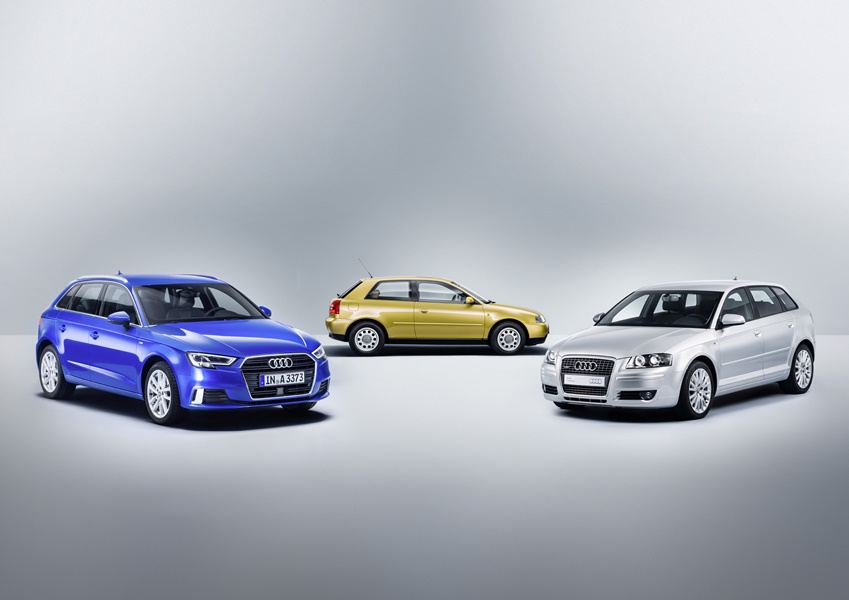 La marca de los cuatro aros celebra el aniversario del Audi A3. El exitoso modelo de Audi debutó hace 20 años en el Salón del Automóvil de Frankfurt (IAA) en Main, Alemania. En la actualidad, el compacto del segmento premium está disponible con cuatro diferentes carrocerías, cuatro tipos de propulsión y tres líneas de acabado.