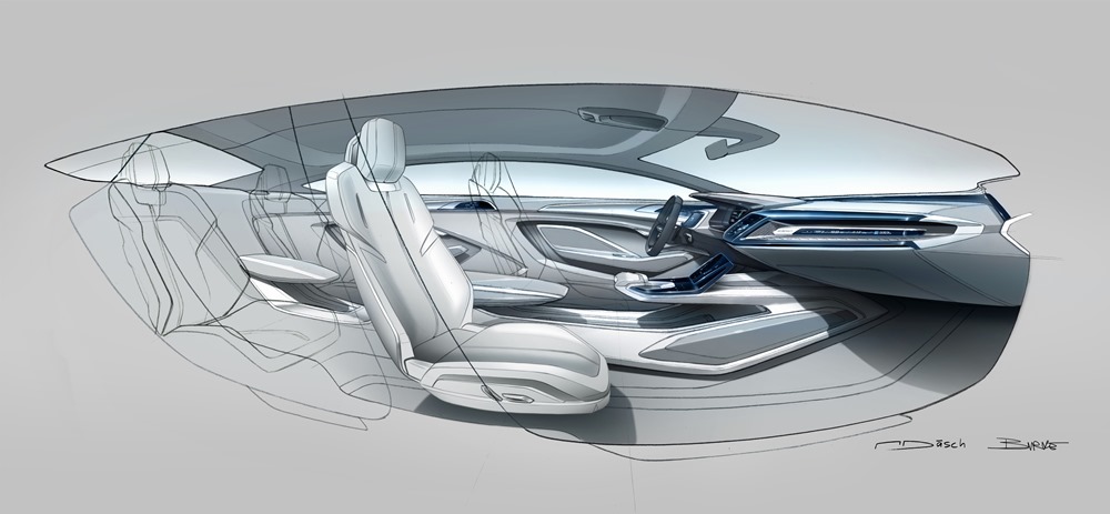 Además, el diseño horizontal de la arquitectura interior incrementa la impresión de amplitud. El conductor y hasta un total de tres pasajeros más pueden viajar en asientos individuales. En la parte trasera un espacio más que generoso para las piernas y a la altura de los hombros. Todo el interior está centrado en torno a la zona del conductor y de los elementos de control. Las grandes superficies con pantallas que hay detrás del volante y en la consola central aparecen en negro mientras están inactivas pero, en el momento que el coche se pone en marcha, cobran vida todas a la vez y permiten visualizar distintos elementos. Este diseño recuerda al de las cabinas de los modernos aviones comerciales, basadas en pantallas minimalistas.
