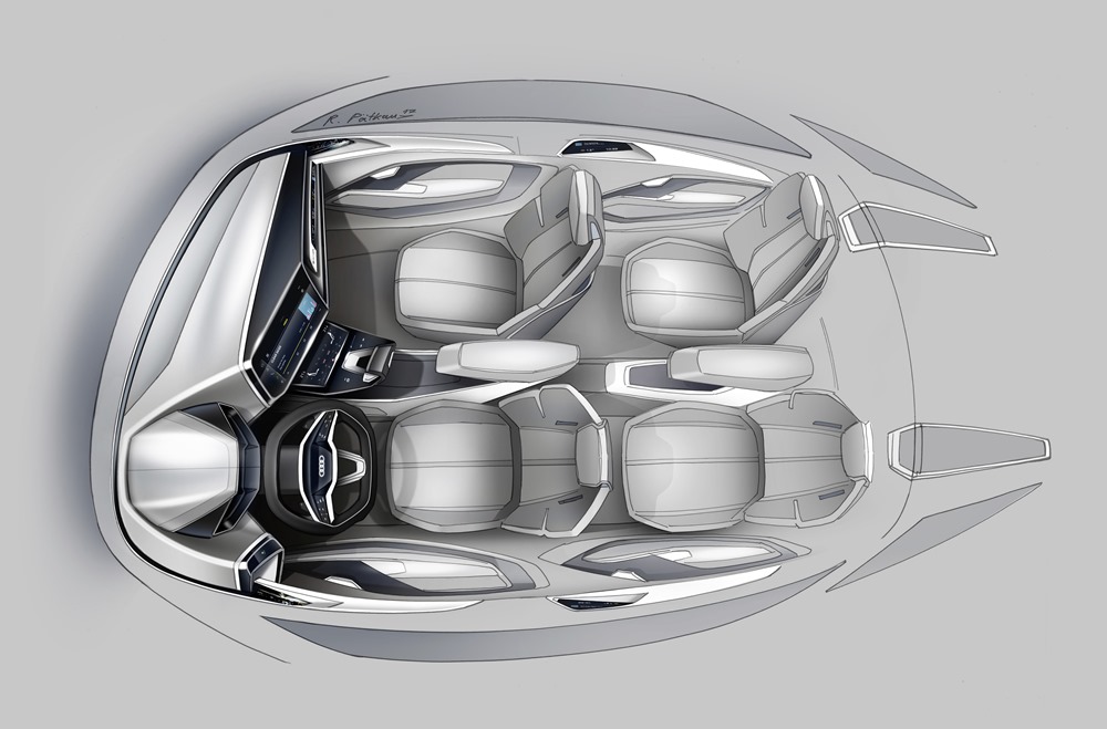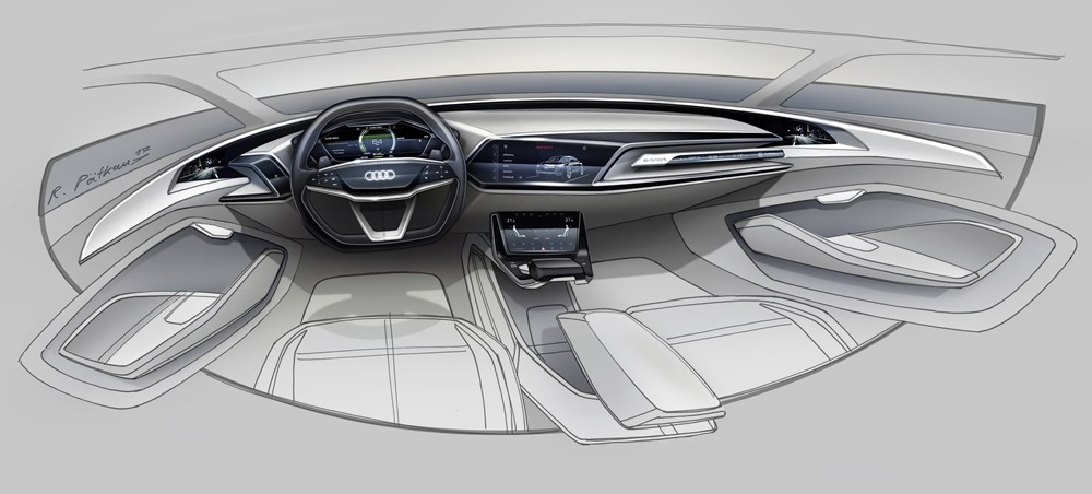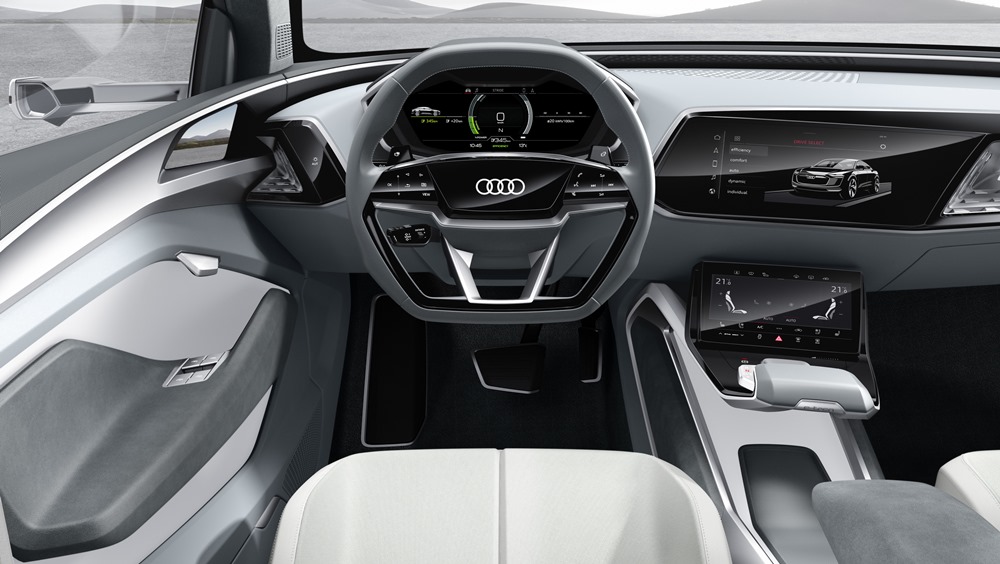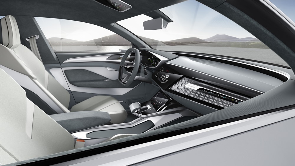 El concept-car está conectado a Internet mediante un módulo 4G, de forma que los pasajeros pueden navegar por la web y enviar correos electrónicos con sus dispositivos móviles; el conductor puede contar con los servicios de Audi connect. Muchas de las funciones se manejan también desde el volante multifunción, con diseño plano en su zona inferior y con sus brazos horizontales equipados con superficies táctiles. EL conductor selecciona el nivel de recuperación de energía a través de dos levas en el volante. La consola central incluye una palanca de cambios de estilizado diseño con un mando en su lado izquierdo que permite seleccionar entre los distintos programas. El conductor puede elegir diferentes modos de conducción desplazando el mando suavemente hacia delante y hacia atrás.