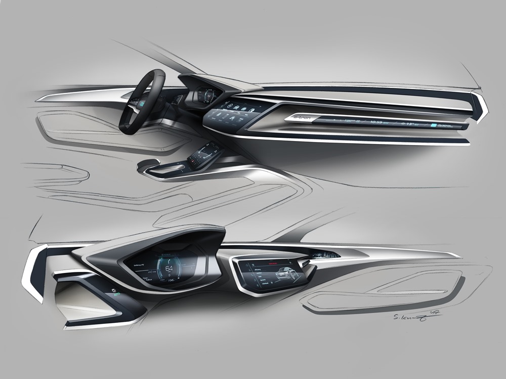 A la izquierda y a la derecha del Audi virtual cockpit se encuentran dos paneles de control táctiles. EL conductor puede utilizar el de la izquierda para controlar las funciones del sistema de iluminación, mientras que el de la derecha, una pantalla OLED táctil de 25,4 centímetros (10 pulgadas) está destinada al manejo de los sistemas de infotainment y de navegación. Las distintas funciones del menú principal aparecen en un mosaico ordenado que permite acceder a los respectivos submenús, manteniendo teclas de acceso directo para las funciones más importantes. Bajo esta gran pantalla situada en la consola central se encuentra una pantalla táctil OLED adicional para operar el sistema de climatización y varias funciones auxiliares. Todos los ocupantes del vehículo tienen acceso a información sobre la calidad del aire ambiental en un módulo superior. En la parte delantera de las puertas se encuentra un display adicional de superficie suavemente curvada que hace las veces de espejo retrovisor exterior. La cámara es capaz de procesar imágenes brillantes y de alto contraste sin reflejos incluso en condiciones de poca luz.
