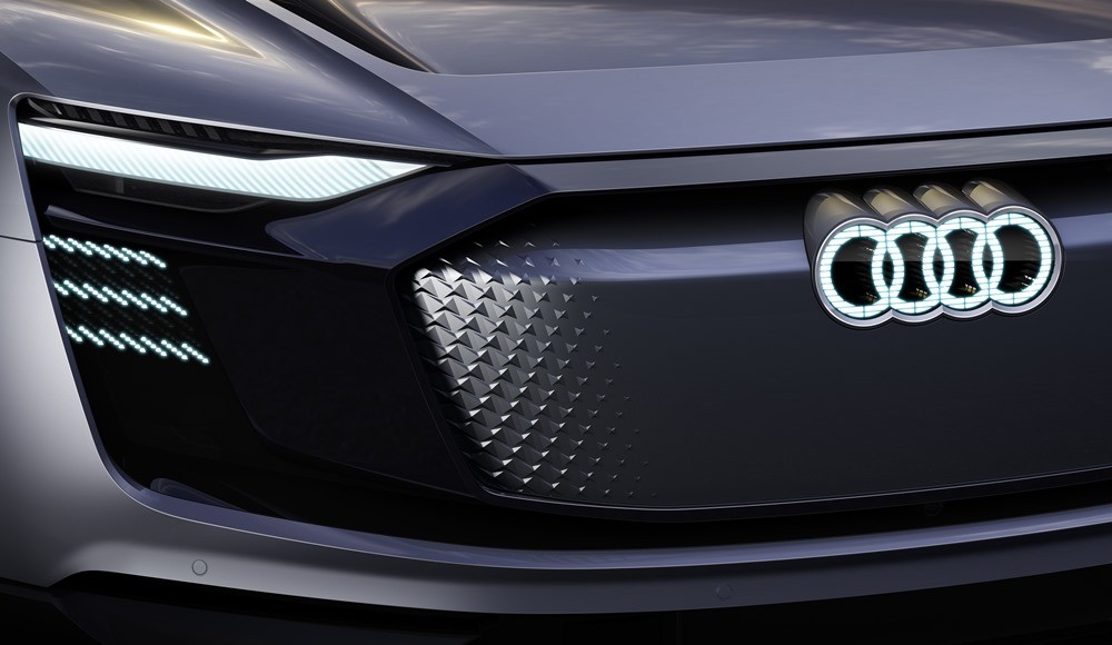 En un encuentro inicial con formas nuevas, el ojo busca elementos familiares. El diseño del Audi e‑tron Sportback ofrece esto desde cualquier perspectiva, pero también sorprende con líneas y soluciones radicalmente nuevas. Un ejemplo es el frontal de este nuevo vehículo eléctrico. En él se mantiene la parrilla Singleframe, que ha sido la característica distintiva de todos los Audi desde 2003. Ahora, sin embargo, su diseño reconoce que la función de una parrilla de radiador clásica se ha quedado obsoleta: para el motor eléctrico del frontal no es necesario el aire que sí le hace falta al motor de combustión, por lo que la gran abertura del frontal del vehículo ya no es necesaria.