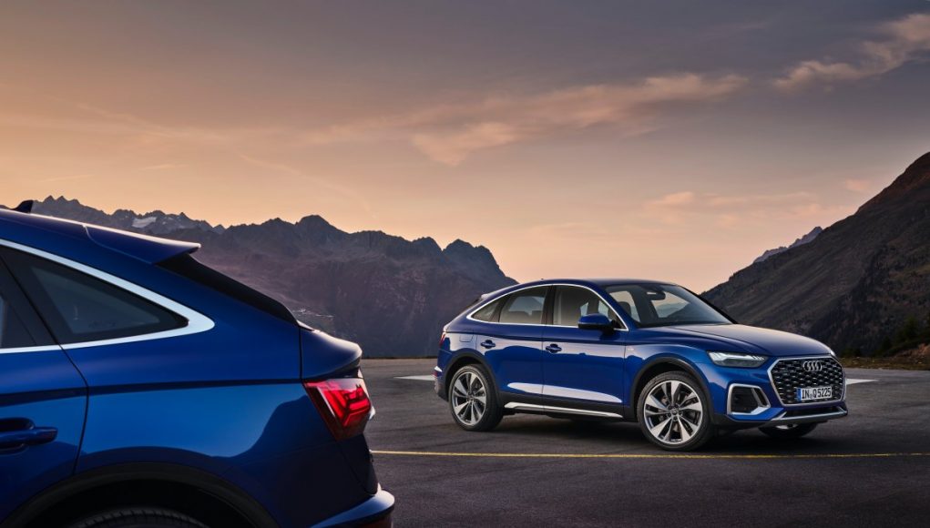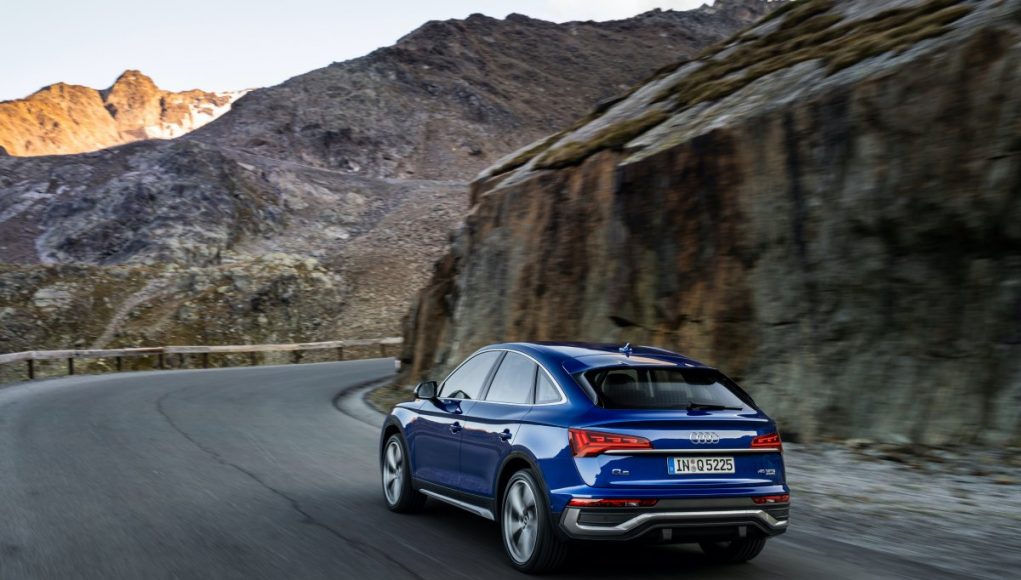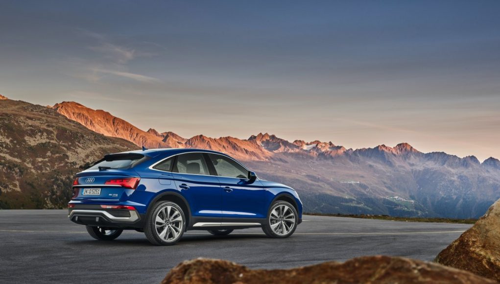 Audi ofrece el nuevo crossover con las líneas exteriores advanced y S line, que presentan diferencias en la parrilla Singleframe, en las entradas de aire laterales y, especialmente, en el paragolpes trasero. Hay 12 colores para la carrocería y múltiples elementos de personalización, incluyendo el paquete de estilo negro y acabados de pintura completos y de contraste. Con una longitud de 4,69 metros, el Q5 Sportback es 7 milímetros más largo que el Q5. La altura y la anchura resultan idénticas; con un valor de 0.30, el coeficiente aerodinámico también es menor.