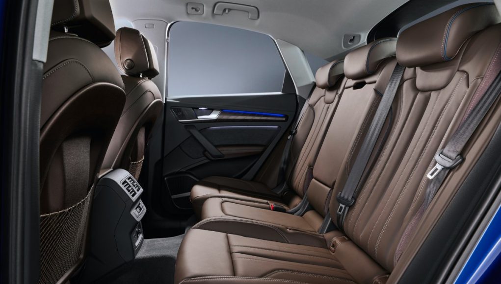 El maletero tiene una capacidad de 510 litros, que aumenta hasta los 1.480 litros con los asientos traseros plegados, aprovechando el espacio hasta el techo. Audi también ofrece en el nuevo modelo de la familia Q5 la banqueta trasera plus, que cuenta con regulación longitudinal de distancia para las piernas de los pasajeros y con respaldos ajustables en inclinación. Si es necesario, puede adelantarse para aumentar la capacidad de carga del maletero hasta 60 litros, alcanzando así un total de 570 litros. Por otro lado, proporciona un mayor confort para los pasajeros traseros cuando está en su posición más retrasada. El paquete opcional para organizar el espacio de carga permite mantener el equipaje ordenado de forma segura. El portón trasero cuenta de serie con accionamiento eléctrico. En combinación con la llave de confort opcional se puede abrir con un simple gesto del pie, algo muy útil cuando, por ejemplo, se tienen las manos ocupadas.