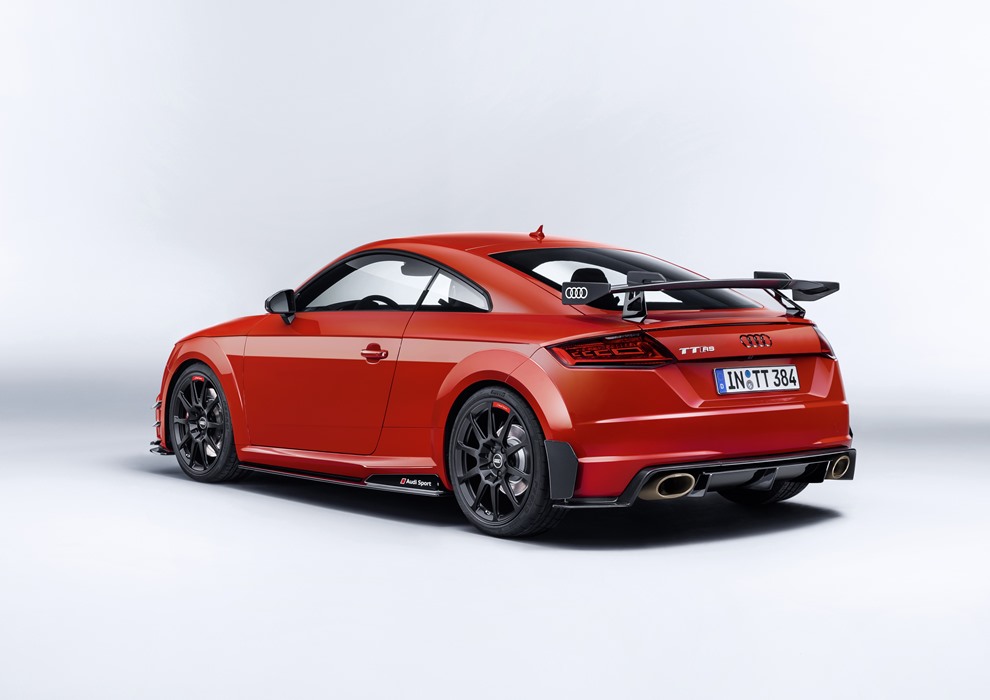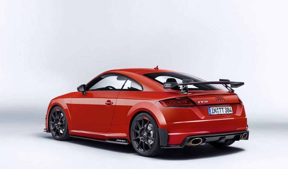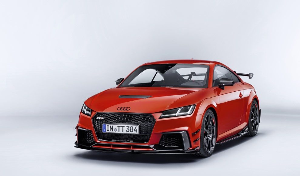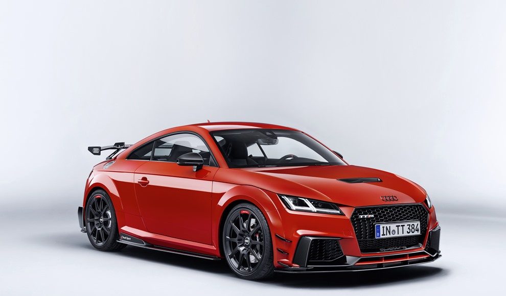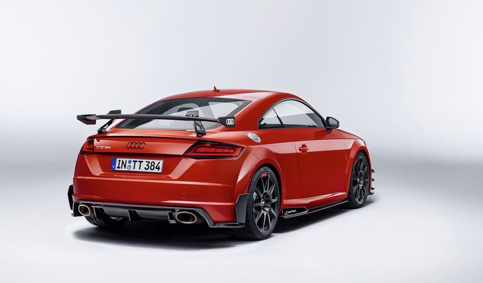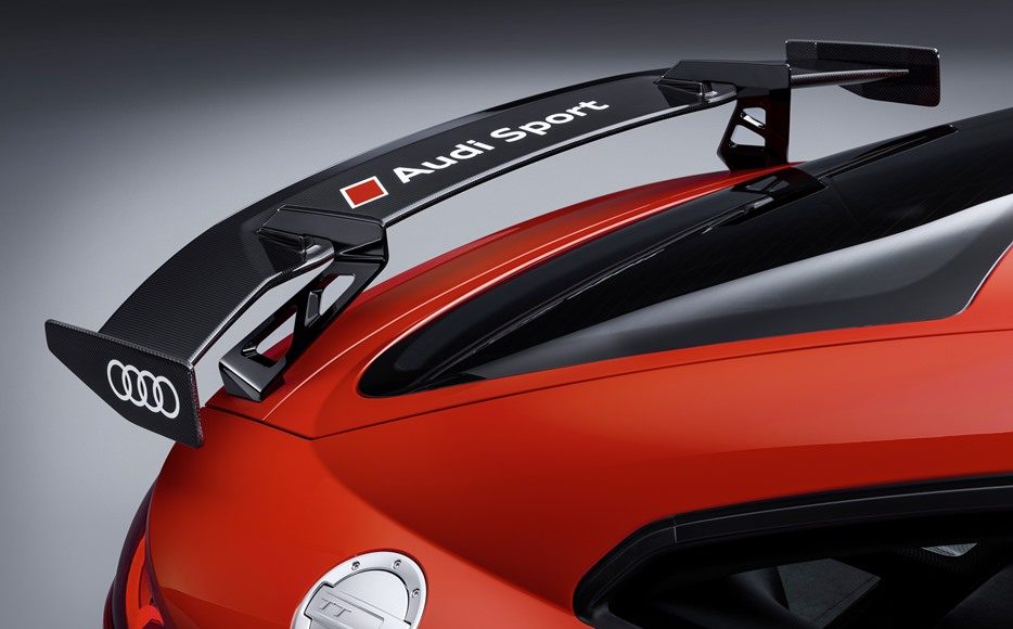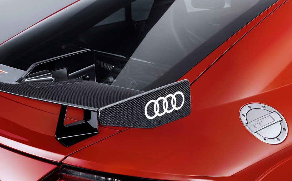 Usa suspensión de tipo coilover con dos o tres vías se ofrece para las distintas variantes del Audi TT y del Audi R8. Las llantas de 20 pulgadas mecanizadas mediante un proceso de fresado y totalmente acabadas en color negro –para todos los modelos R8 y TT– también proceden directamente de la competición. Reducen el peso en hasta 7,2 kg en el caso del Audi TT, y hasta 8 kg en el Audi R8. Los neumáticos deportivos asociados a estas llantas son en medidas 245/30 R20 y 305/30 R20 (ejes delantero y trasero respectivamente) en el Audi R8, y 255/30 R20 en ambos ejes para el Audi TT. Para el TT Coupé con tracción quattro, la gama incluye una barra de refuerzo entre las torretas de la suspensión del eje trasero, que mejora la rigidez y hace que la conducción sea aún más precisa. Los propietarios del Audi TT RS también pueden aumentar la limitación electrónica de la velocidad máxima de sus vehículos hasta los 280 km/h.