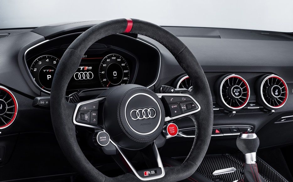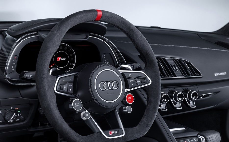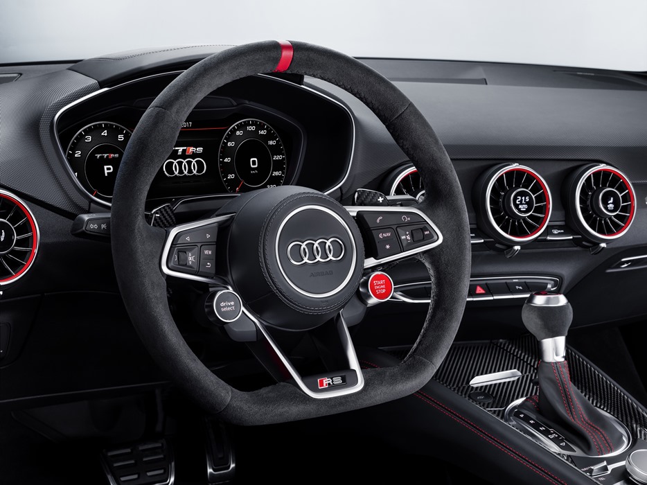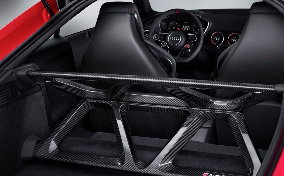 La gama se completa con atractivas opciones para el interior. Para los Audi R8 y Audi TT se ofrece un volante deportivo multifunción plus revestido en Alcantara y con una marca roja a las 12 en punto. Las levas de cambio realizadas en CFRP están disponibles para los modelos equipados con el cambio S tronic de siete velocidades. Audi Sport ha desarrollado una estructura de refuerzo especial para el TT también realizada en CFRP, que sustituye a los asientos traseros reduciendo el peso en unos 20 kg, y mejorando la rigidez torsional y, por lo tanto, el comportamiento dinámico en curva a alta velocidad.