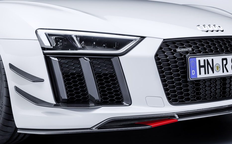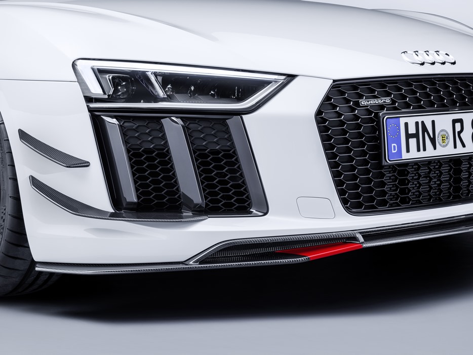 Como parte del lanzamiento a finales de verano de 2017, la nueva gama de componentes y accesorios estará disponible para los actuales Audi R8 y Audi TT (TT, TTS y TT RS); otros modelos seguirán de forma gradual. Los componentes y accesorios de Audi Sport Performance Parts cubren cuatro áreas hasta la fecha: suspensión, sistema de escape, exterior e interior. Las placas de soporte de las pastillas de freno, realizada en titanio ultraligero en el caso del Audi R8, está pintada en color rojo fluorescente, y ahorran un kg respecto a las de serie.