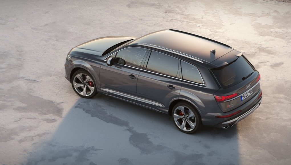 El Audi SQ7 presenta el diseño actual de los modelos de la familia Q, con detalles específicos característicos de las versiones S. Exteriormente, se diferencia por sus dos barras verticales en la parrilla Singleframe, las carcasas de los retrovisores con aspecto de aluminio y las cuatro salidas de escape específicas con terminaciones redondas y cromadas. El blade en el paragolpes tiene una forma tridimensional más acusada y la protección de los bajos en la zaga se muestra aún más robusta. Algunos elementos están pintados en color plata mate; opcionalmente se puede equipar el paquete de estilo negro. El color gris Daytona con efecto perla, así como numerosos colores de pintura personalizados de Audi exclusive, están disponibles como opciones especiales.