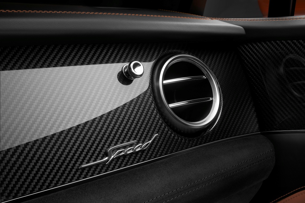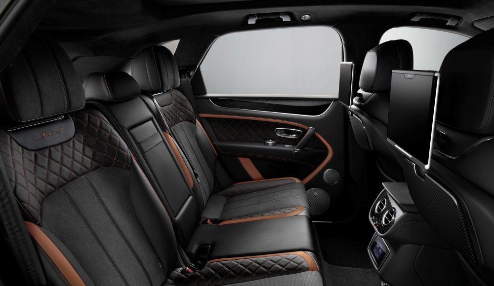 Mientras que el Bentayga ofrece la opción de bordar las alas de Bentley en la parte superior de los respaldos de los asientos, en los nuevos modelos Speed esto se ha sustituido por la palabra «Speed» con pespunteado en contraste o invisible. Una insignia Speed de metal adorna el salpicadero del lado del pasajero, mientras que las placas de estribo Speed iluminadas dan la bienvenida a los pasajeros al lujoso habitáculo.