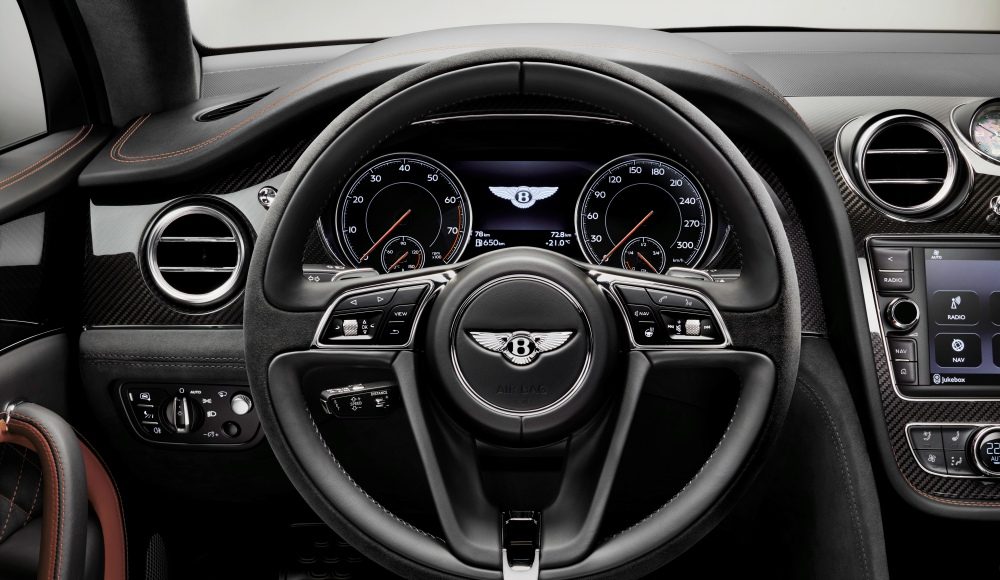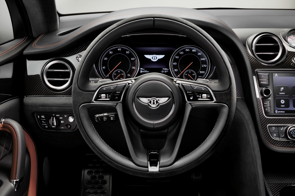 El sistema de escape, dotado de un sonido todavía más característico al arrancar y cambiar de marcha, se combina con una suspensión más firme para mejorar la experiencia del conductor. La tracción en las cuatro ruedas continua del Bentayga ofrece una manejabilidad líder en su clase en cualquier entorno. Por su parte, los potentes frenos de cerámica, disponibles como opción, son los más potentes y de mayor tamaño jamás utilizados en un Bentley, con un par de frenado máximo de 6.000 Nm y diseñados para resistir temperaturas de hasta 1.000 °C. Además, pesan 20 kg menos que los frenos de hierro.