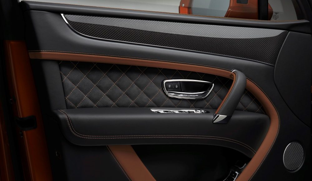 El habitáculo del Bentayga, elaborado en Crewe (Inglaterra), es la cúspide del diseño británico moderno. El Bentayga Speed presume de un interior con una nueva combinación de color diseñada específicamente para resaltar su estilo único y caracterizada por el uso por primera vez en un Bentayga de guarnecidos en Alcantara, un tejido de tacto exquisito reservado normalmente para vehículos de altas prestaciones, como los modelos Continental Supersports de Bentley. No obstante, si el cliente lo prefiere, puede optar por sustituirlo por los tapizados en piel sin coste adicional.