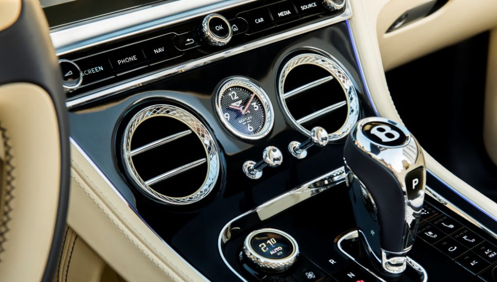 El salpicadero del GT V8 y el GT V8 Convertible integra un avanzado panel de instrumentos digital pensado para el conductor, así como la pantalla giratoria opcional de Bentley, que se compone de una pantalla táctil de 12,3 pulgadas ubicada en una unidad de tres laterales, y que aparece, junto a tres elegantes indicadores analógicos, al girar el enchapado.