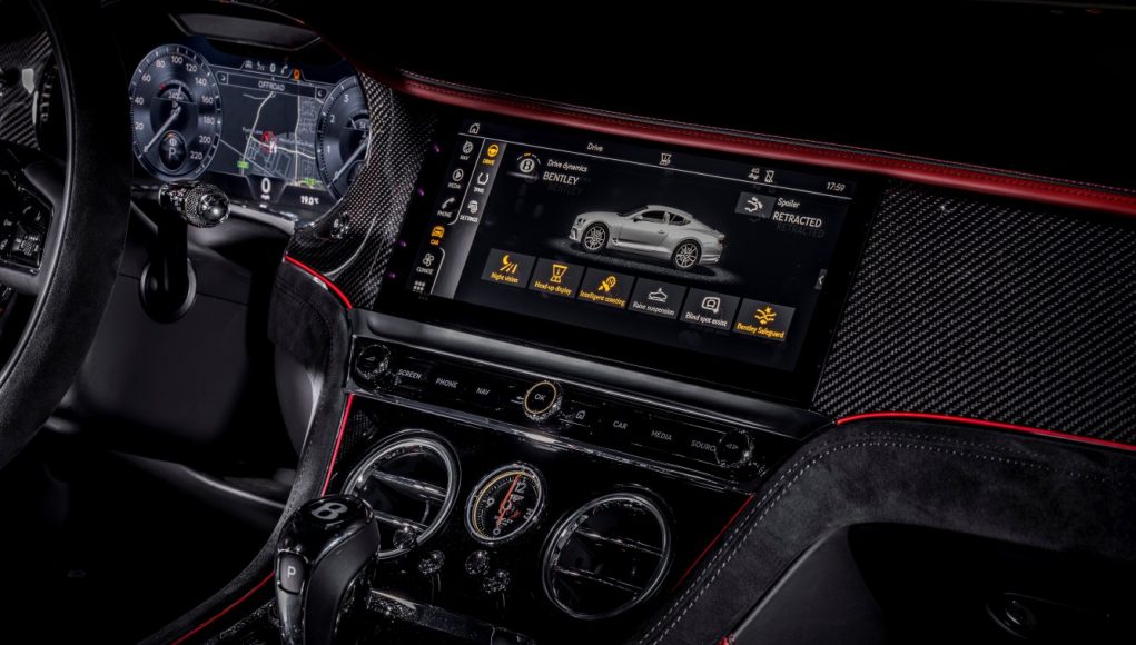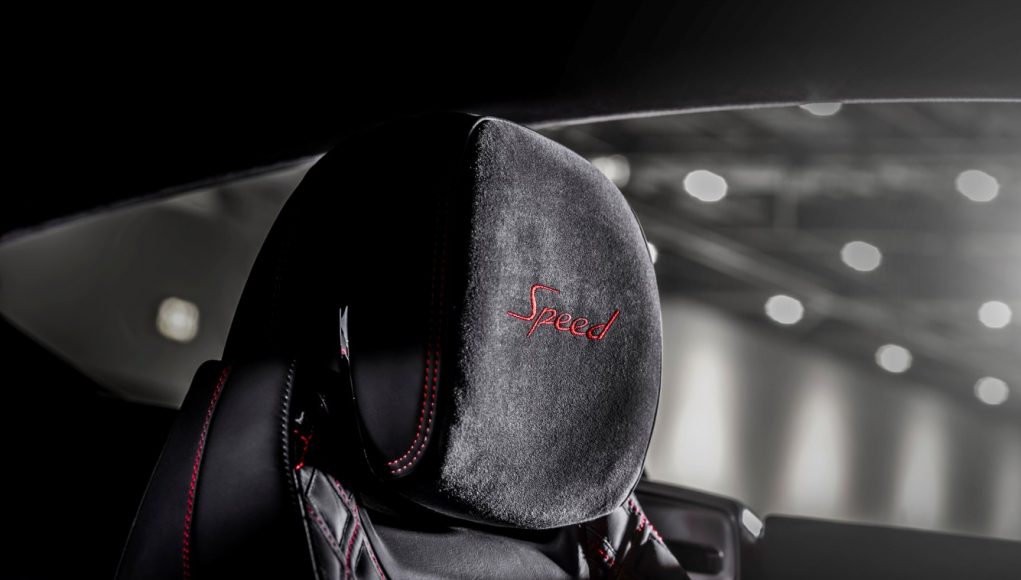 El lujoso interior se puede personalizar aún más con una selección de 15 colores de piel principales y 11 secundarios, así como el uso de cuero en lugar de Alcantara para la división de colores Speed. La consola central se puede terminar con un nuevo diseño de tinte oscuro convertido en aluminio, lo que brinda una superficie maquinada geométricamente perfecta y un acabado bellamente estampado.