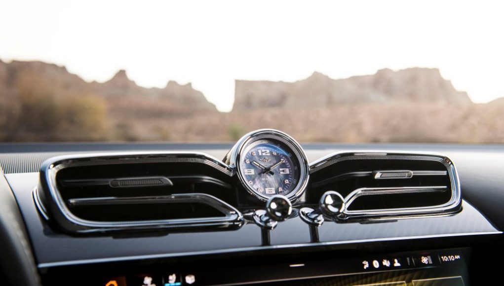 En el interior, el Bentayga Speed ​​presenta un tema de diseño dramático que equilibra el lujo y el rendimiento de una manera inigualable. La división de color única de Speed ​​se logra mediante el uso de colores oscuros realzados por acentos de piel primarios que se extienden por todos los asientos y molduras interiores. «Swooshes» elegantemente elaborados de cuero en contraste se deslizan alrededor de las puertas, a lo largo de los bordes de los cojines de los asientos y los respaldos, y en la consola inferior.
