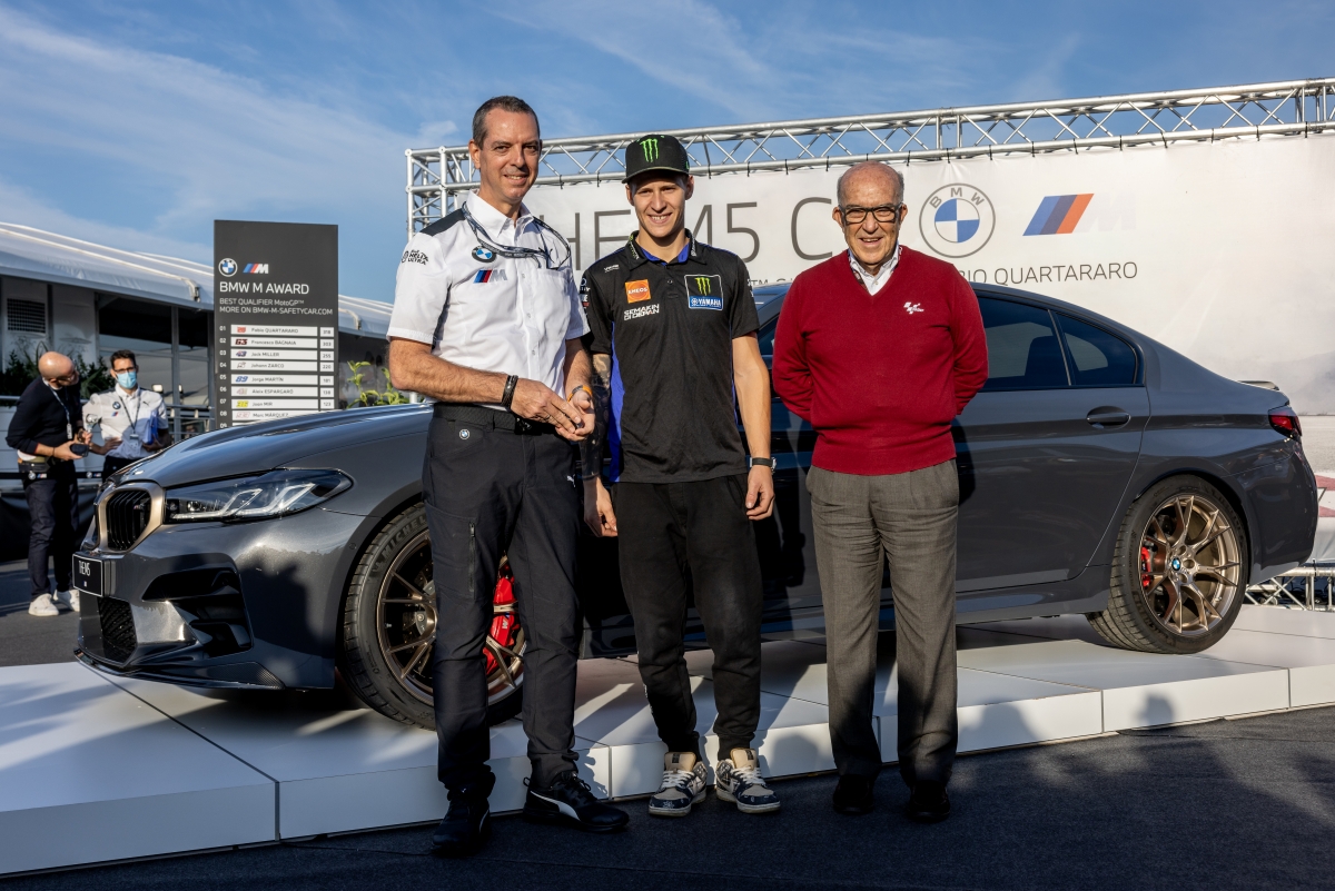 “El BMW M Award tiene un gran significado para los pilotos. MotoGP es la cúspide del motociclismo y es muy importante para nosotros reconocer las brillantes actuaciones de los pilotos de MotoGP a lo largo de la temporada”, dijo van Meel. “Cada fin de semana de carreras, nos emocionan con sus impresionantes actuaciones sobre la pista. MotoGP reúne a los mejores pilotos de motos del mundo, y el BMW M Award es la recompensa adecuada para el más rápido de todos ellos. Por segunda vez consecutiva, esa persona ha sido Fabio Quartararo. Una vez más ha demostrado su habilidad y velocidad a lo largo de la temporada, ganando merecidamente el campeonato del mundo, y también ha brillado con luz propia de nuevo en el BMW M Award. Estamos encantados de entregarle el BMW M5 CS en reconocimiento a sus actuaciones durante la clasificación.