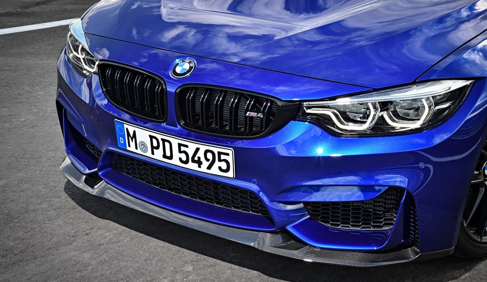 Fieles a su estética, los diseñadores de BMW M GmbH han dotado al nuevo BMW M4 CS de un aspecto que refleja el carácter deportivo del coche. La característica distintiva de su prominente frontal, que se completa con los faros de LED dobles de última generación, es el faldón delantero con grandes tomas de aire de tres secciones. Estas tienen la función de alimentar el generoso suministro de aire de refrigeración al motor de alto rendimiento y a los frenos M carbono cerámicos con pinzas de freno de seis pistones y acabado anodizado dorado para la parte delantera y pinzas de cuatro pistones para la parte trasera.. El nuevo difusor delantero diseñado específicamente para este modelo es de fibra de carbono vista exclusiva para el BMW M4 CS de edición especial. Para mejorar la eficiencia aerodinámica, este divisor se alía con el difusor trasero del BMW M4 GTS y con el también nuevo alerón Gurney de fibra de carbono vista de la tapa del maletero que minimiza la fuerza ascensional. BMW M GmbH abre nuevos horizontes con las innovadores luces traseras con tecnología OLED (Organic Light Emitting Diode) creadas en exclusiva para el BMW M4 CS y el BMW M4 GTS. Además, el divisor delantero, el difusor trasero y el alerón Gurney, junto con el capó CFRP alargado, la línea de techo de estilo coupé, los elegantes retrovisores exteriores M deportivos y los musculosos pasos de rueda, permiten al nuevo BMW M4 CS presumir de una figura extremadamente dinámica, incluso parado.