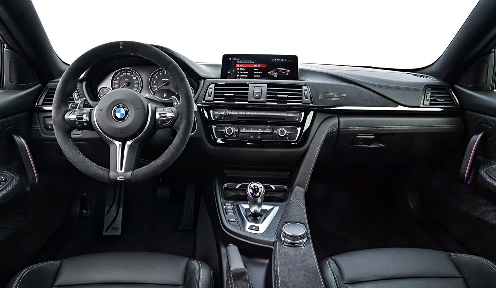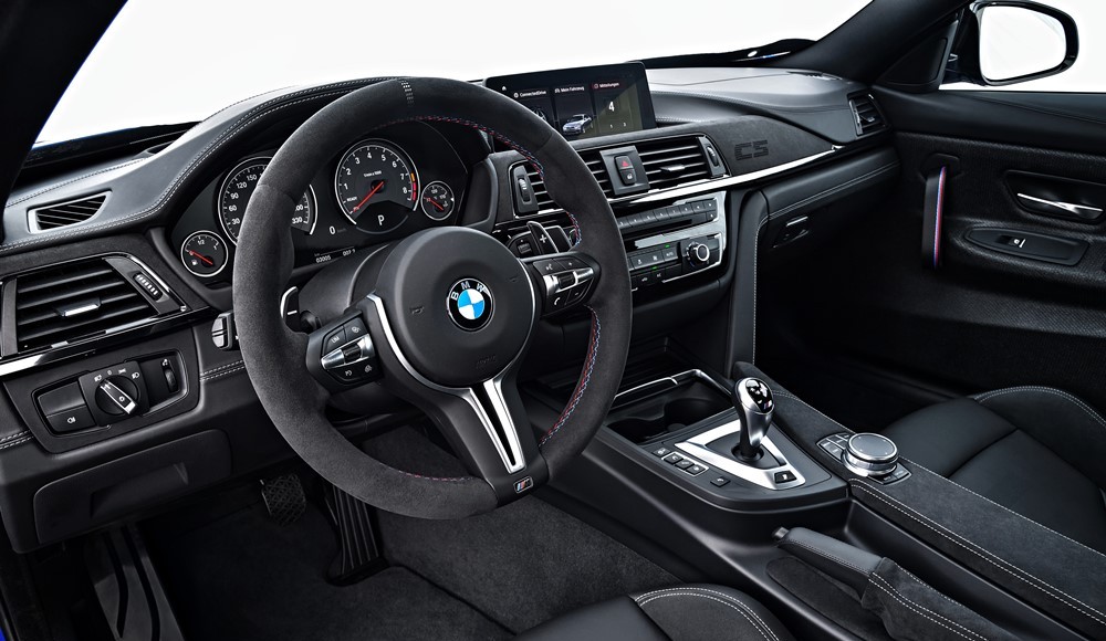 El generoso uso de cuero y Alcantara permite al BMW M4 CS ofrecer un ambiente perfecto y acogedor de carácter deportivo e innegable elegancia. El conductor del BMW M4 CS no tendrá que prescindir de las cosas más agradables de la vida. De hecho, entre las prestaciones de serie se incluyen el climatizador, una versión del sistema HiFi BMW Professional adaptado a las características acústicas del BMW M4 CS y el sistema de navegación Professional.