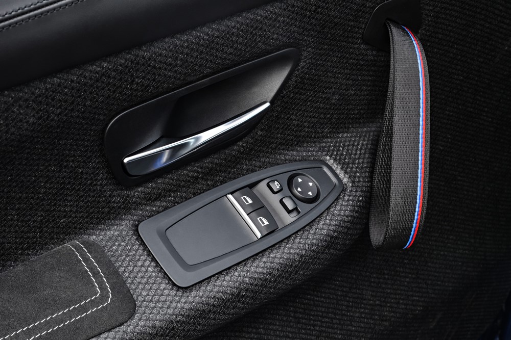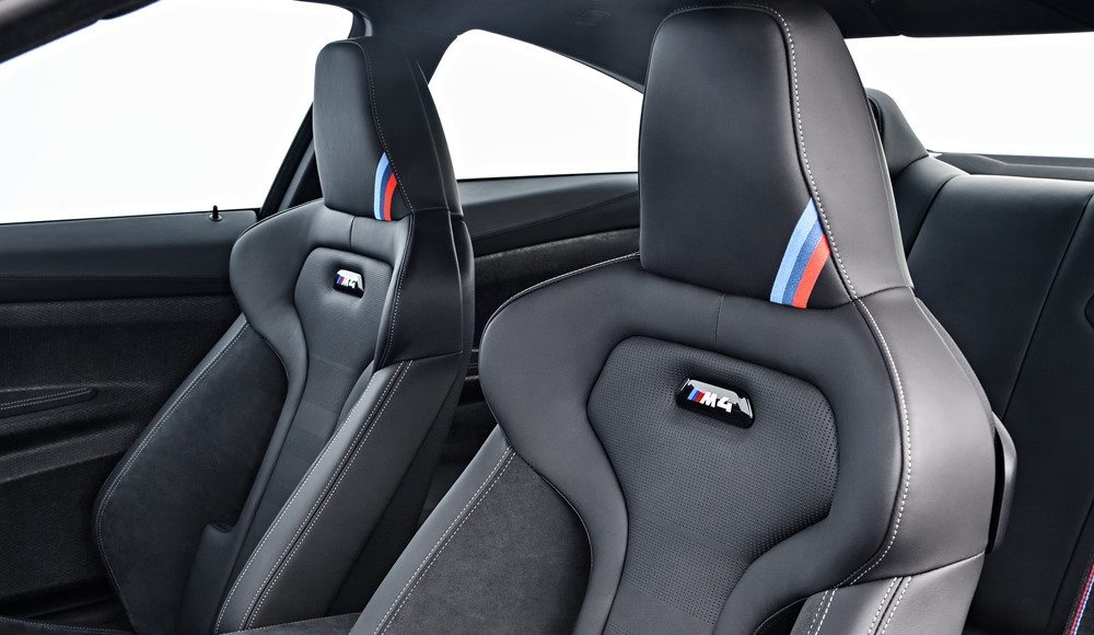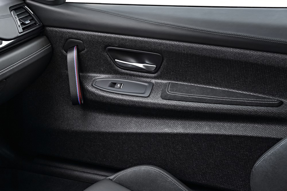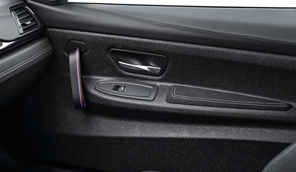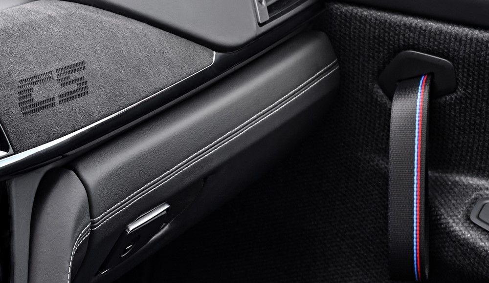 El interior del nuevo BMW M4 CS destaca por su atmósfera deportiva. Los ligeros asientos deportivos M con cuero y Alcantara son solo el punto de partida. El aire de dinamismo se extiende por el guarnecido de los paneles de las puertas hechos con fibras naturales compactas que incluye agarres. Tanto el capó, con su característica salida de aire hacia la parte posterior, como el techo son de plástico reforzado con fibra de carbono (CFRP), un material de alta tecnología, ligero y extremadamente rígido.