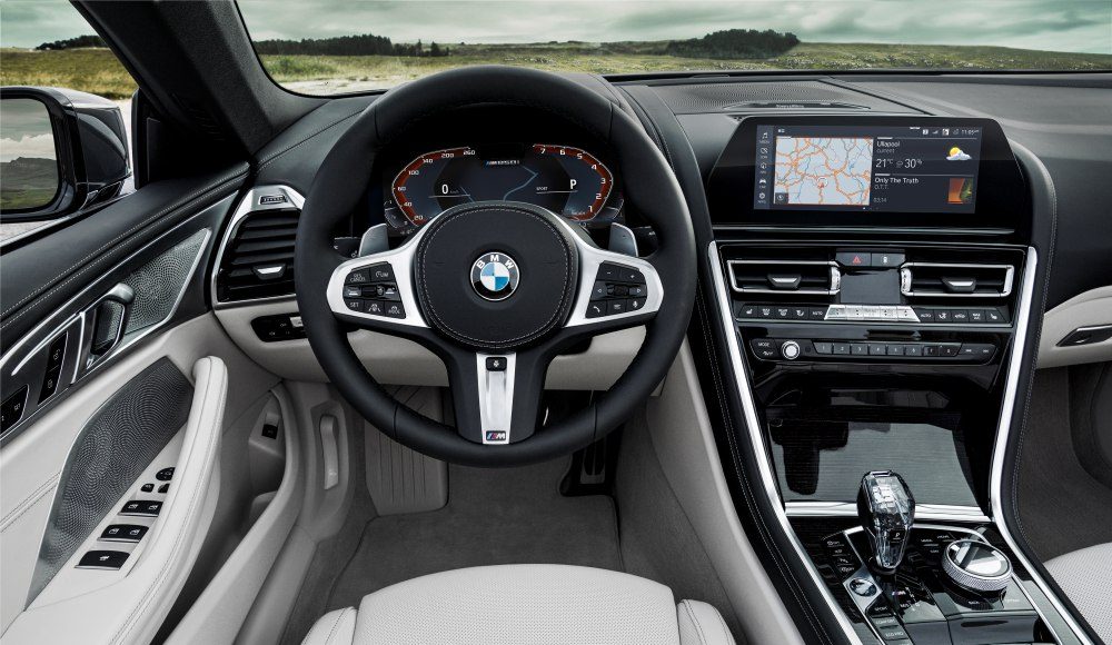 Puesto de conducción bajo y deportivo. Asientos con ajuste eléctrico, memoria y tapicería de cuero Vernasca, de serie en el BMW 840d xDrive Cabrio. El BMW M850i xDrive Cabrio está equipado de serie con asientos multifuncionales y tapicería Merino con elementos adicionales. Interior con trazos y superficies en orientación longitudinal, puesto de conducción enfocado al conductor y una disposición claramente estructurada de los controles, que realza la experiencia dinámica de la conducción. Materiales de alta calidad, elegante iluminación interior mediante la función Ambient light. Salpicadero y parte superior de las puertas, tapizados en piel.