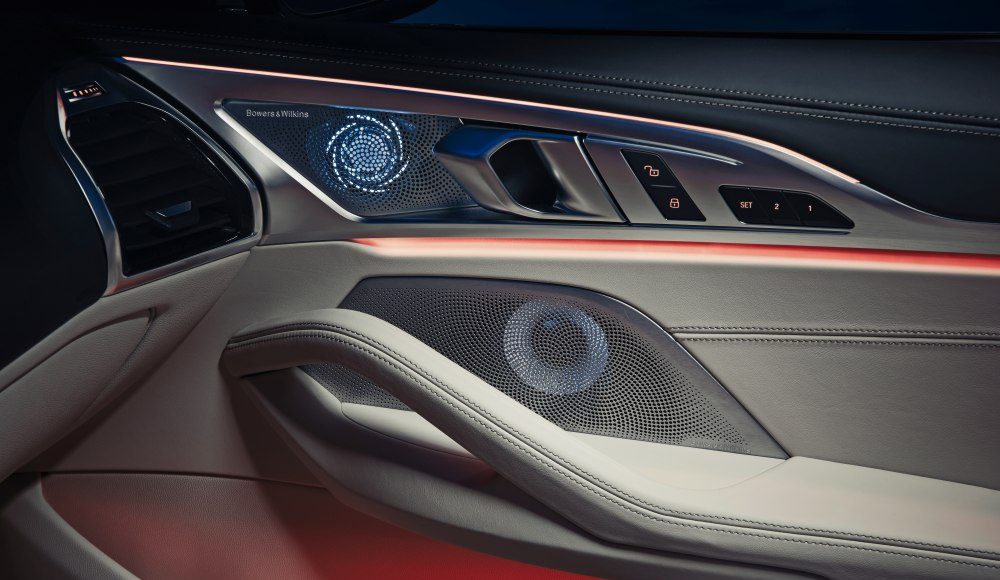 Opciones de alta categoría concebidas para un lujo moderno: cargador inalámbrico del teléfono, BMW Display Key, equipo de sonido Bowers&Wilkins Diamond Surround Sound System, paquete de confort de temperatura, ventilación activa de los asientos, función automática de cierre suave en las puertas e inserciones de vidrio en determinados elementos del interior.