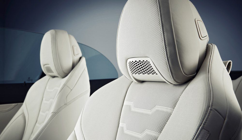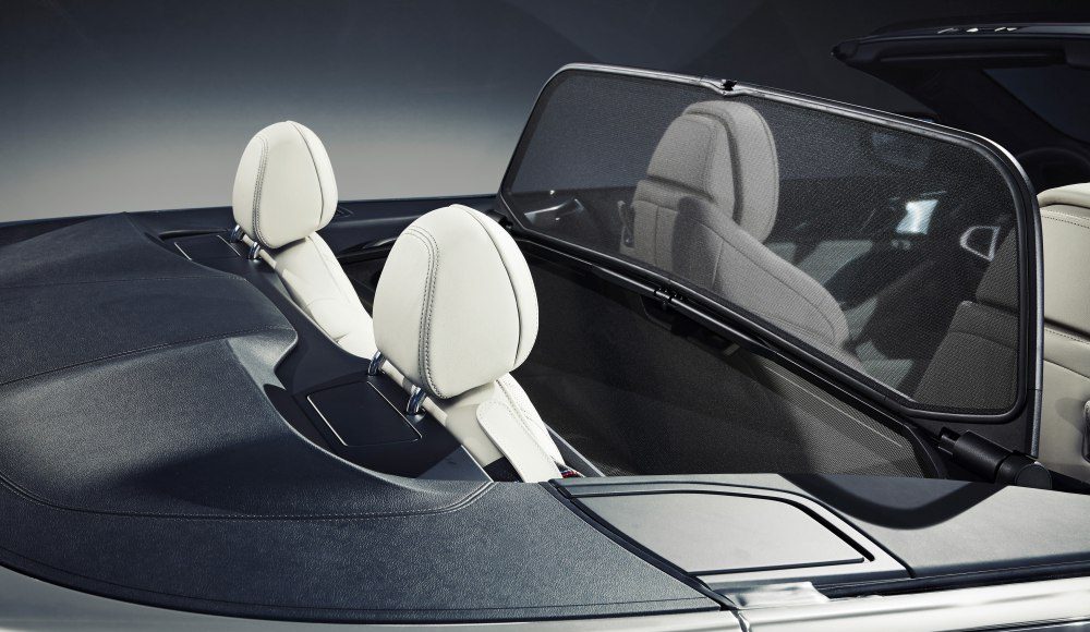 Características de equipamiento específicas para el Cabrio, diseñadas para realzar el confort: deflector de viento de serie para colocar tras las plazas traseras y, opcionalmente, calefacción para el cuello integrada en los reposacabezas delanteros. Elementos de cuero con tecnología Sun Reflective.