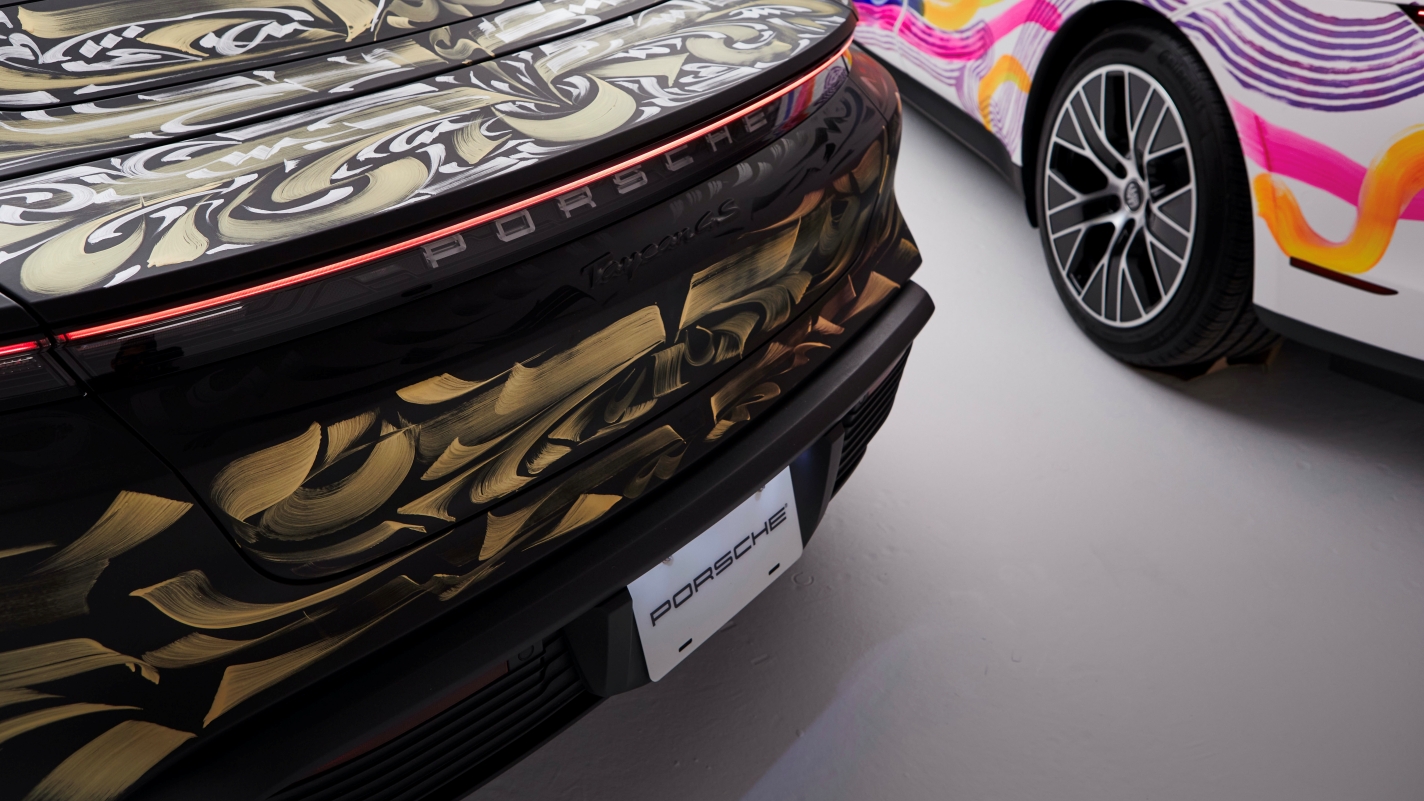 Los dos rivales de esta batalla encontraron en la forma del Taycan una superficie fascinante y gratificante sobre la que trabajar. “El Porsche Taycan tiene unas curvas realmente dulces”, comentó Keho, cuya paleta se centraría en sus neones favoritos y rosas fucsia. «Este vehículo es eléctrico y responsable con el medio ambiente, pero al mismo tiempo es deportivo y tiene un toque picante. Esta combinación no es nada usual. Quiero transmitir cómo es un Taycan cuando lo conduces, poner de manifiesto esa conexión del alma en la que el coche se convierte en una extensión de tu cuerpo”.