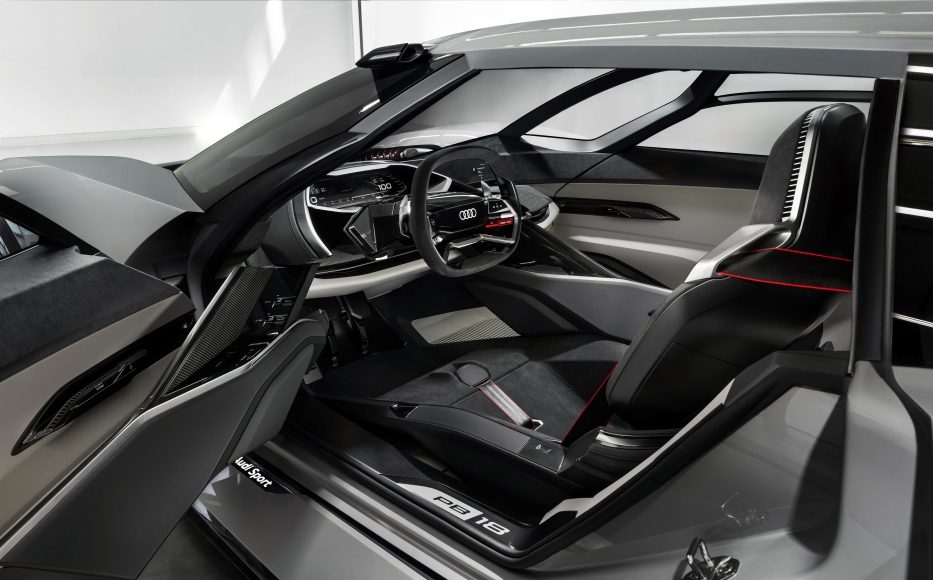 El Audi PB18 e-tron sigue la arquitectura tradicional de un automóvil deportivo de motor central, con el puesto de conducción muy adelantado. El centro de gravedad del vehículo se encuentra localizado tras los asientos y por delante del eje trasero, lo que beneficia la dinámica de conducción. Aquí no interviene la posición de la transmisión, como en un automóvil con un sistema de propulsión convencional, sino que lo hace la batería.