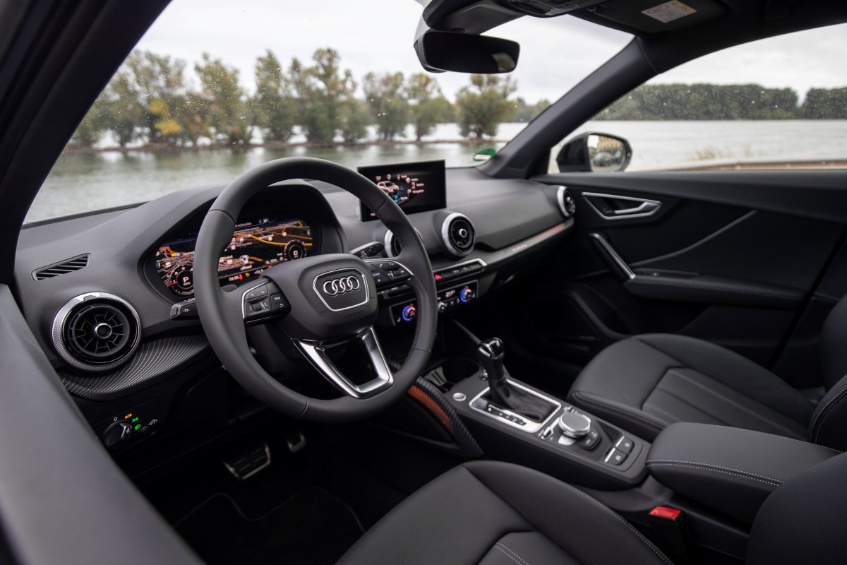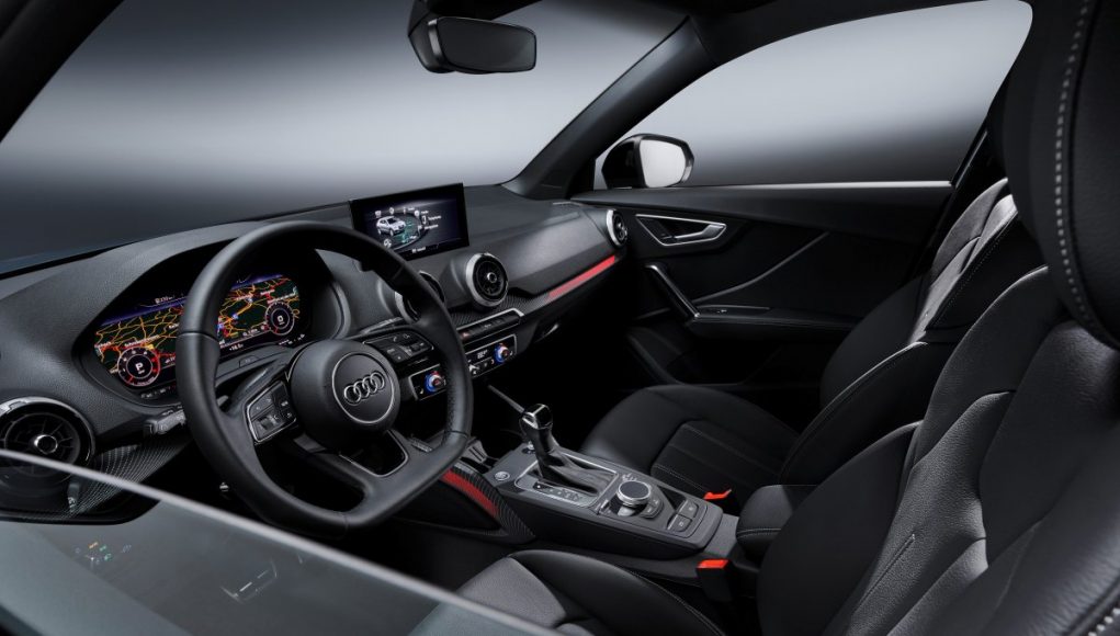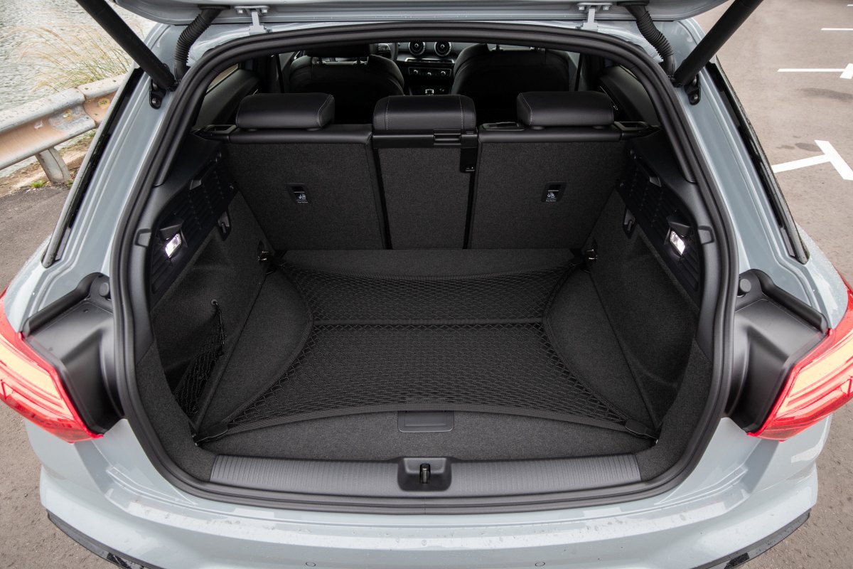 El espacioso habitáculo del Audi Q2 ofrece espacio para cinco pasajeros, que pueden acceder con facilidad y sentarse en una posición elevada. El techo panorámico opcional aumenta la luminosidad interior; los cristales tintados, también opcionales, ofrecen una mayor privacidad en los asientos traseros. La capacidad del maletero es de 405 litros, que se amplían hasta alcanzar los 1.050 litros cuando se pliegan los respaldos de los asientos traseros. Estas cifras se reducen en 50 litros en las versiones con motor TDI y tracción quattro. Como opción, se puede equipar el paquete de almacenamiento y un portón trasero eléctrico. Con el motor 1.5 TFSI, el Q2 tiene una capacidad de remolque de hasta 1.500 kilogramos si se instala la bola de enganche opcional.