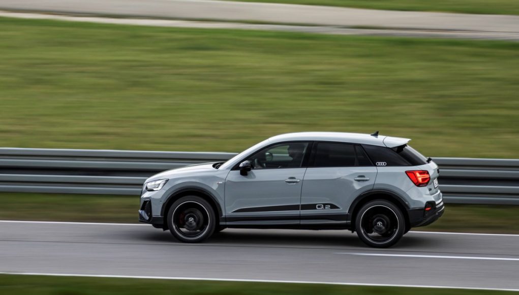A principios del 2021 se añadirá a la gama el Audi Q2 30 TFSI con el motor 1.0 TFSI, que supone la versión de acceso a la gama. Rinde una potencia de 81 kW (110 CV) y un par máximo de 200 Nm. El 1.0 tricilíndrico es muy compacto y también muy ligero, con un peso de 88 kilogramos. El proceso de combustión tiene lugar según el ciclo Miller. A diferencia de un motor de combustión convencional se modifican los tiempos de cierre de las válvulas, lo que mejora el nivel de eficiencia en el rango medio de revoluciones, que es en el que más tiempo funciona el motor.