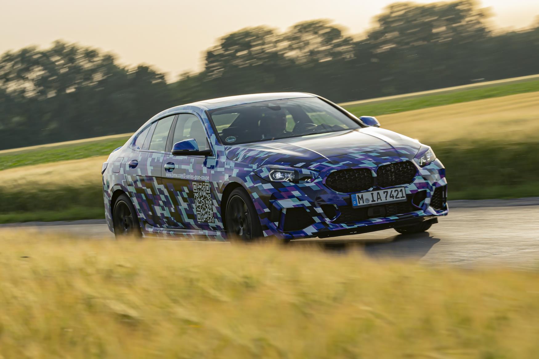 Se están aplicando los retoques finales al primer BMW Serie 2 Gran Coupé como parte de su fase final de pruebas y añadiendo un toque adicional de intriga, el compacto Premium ha añadido un nuevo camuflaje multicolor con un enorme código QR en las puertas laterales. Este código redirige a la página www.bmw.com/2-series-gran-coupe que adelanta píldoras de información de este nuevo vehículo de BMW anticipándose a su presentación mundial en el Salón de Los Ángeles en noviembre de 2019. El lanzamiento al mercado tendrá lugar en primavera de 2020.