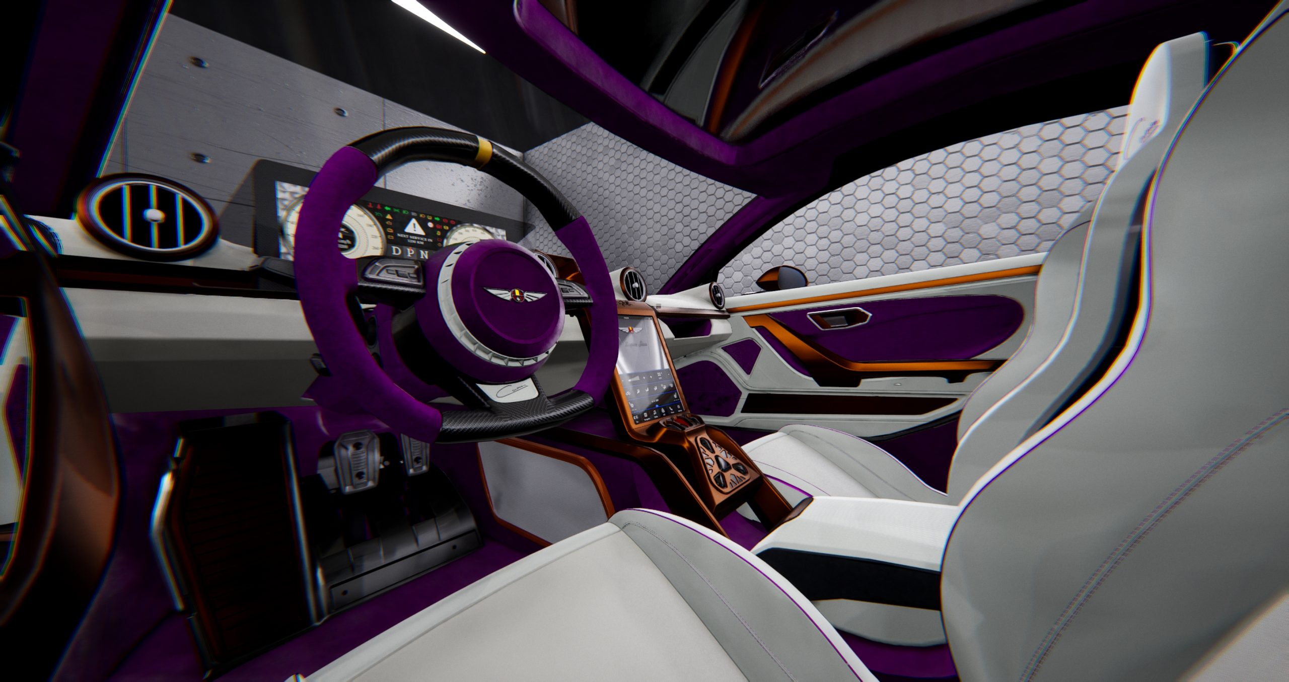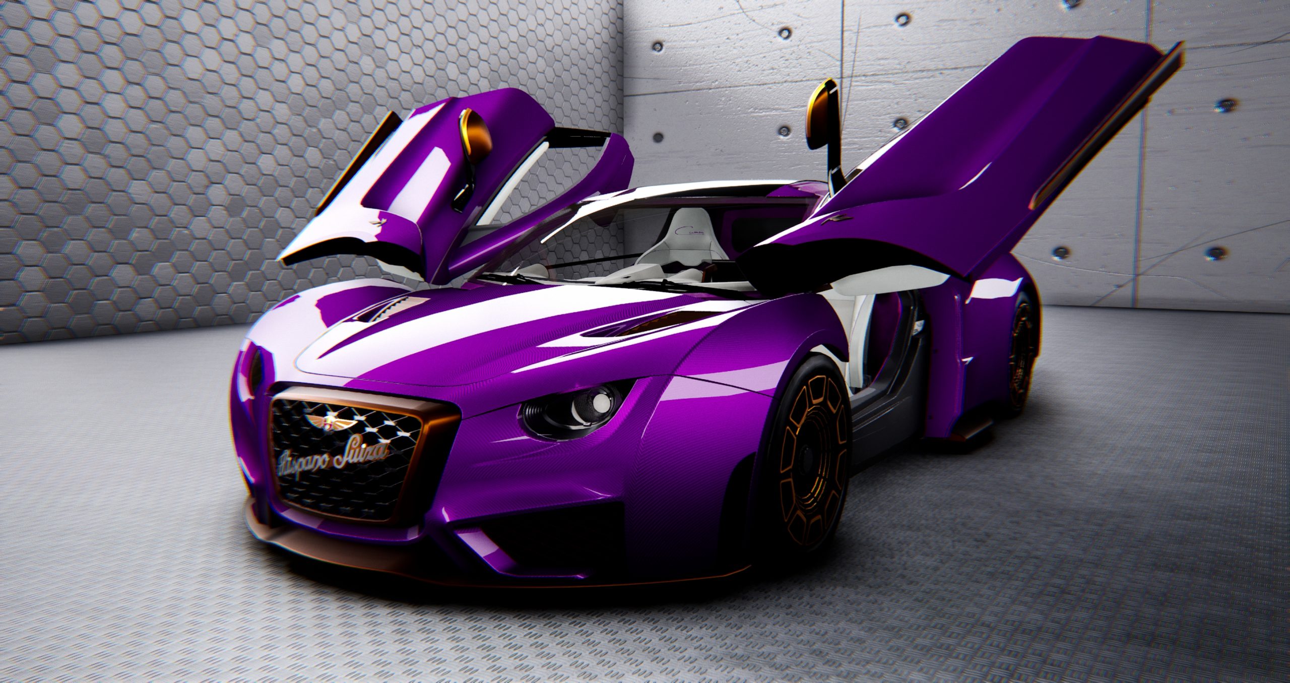 El elegante exterior del Hispano Suiza del Sr. Fux lucirá un color violeta metalizado hecho a medida con acabados en cobre en la rejilla frontal, los retrovisores laterales, las molduras de las ventanas y las ruedas. Esta combinación de colores preserva la elegancia atemporal del Carmen y subraya su gran deportividad y formas únicas. En el interior, los asientos de cuero blanco lucen ribetes de color violeta, y el volante de fibra de carbono está acabado en violeta, con un ribete en cobre. El resultado de todo ello es un encargo que refleja el lujo y la herencia deportiva por la que Hispano Suiza es famosa.