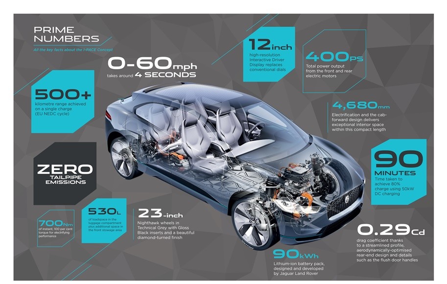 “No se trata solo de un concepto. Es un anticipo de un coche de fabricación en serie de cinco plazas que estará surcando las carreteras en 2018. Será el primer vehículo eléctrico de Jaguar con batería y abre un nuevo capítulo en la historia de nuestra legendaria marca”.