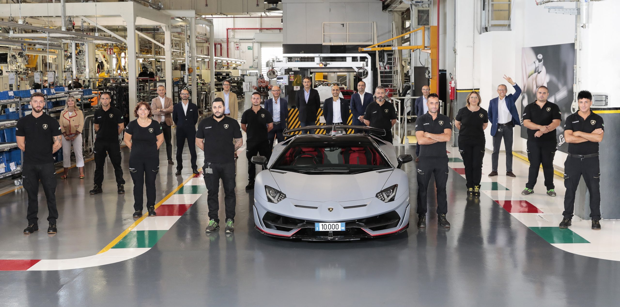 Automobili Lamborghini ha alcanzado un importante hito histórico con su modelo V12: en tan sólo nueve años la planta de Sant’Agata Bolognese ha producido ya 10.000 modelos del Aventador. El vehículo con el chasis número 10.000 es un Aventador SVJ Roadster en color Grigio Acheso (gris) con Rosso Mimir (rojo) y un interior Ad Personam en Rosso Alala (rojo) y negro. El coche está destinado al mercado tailandés.