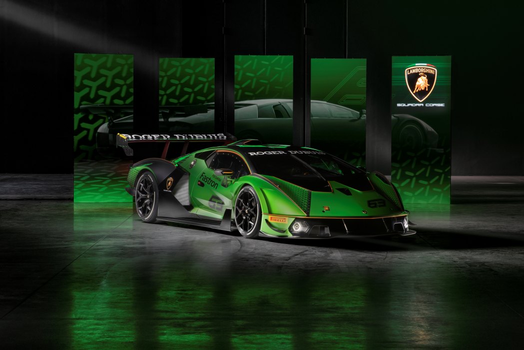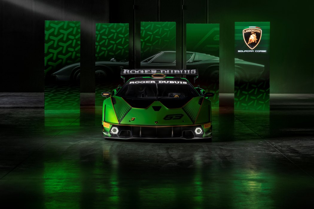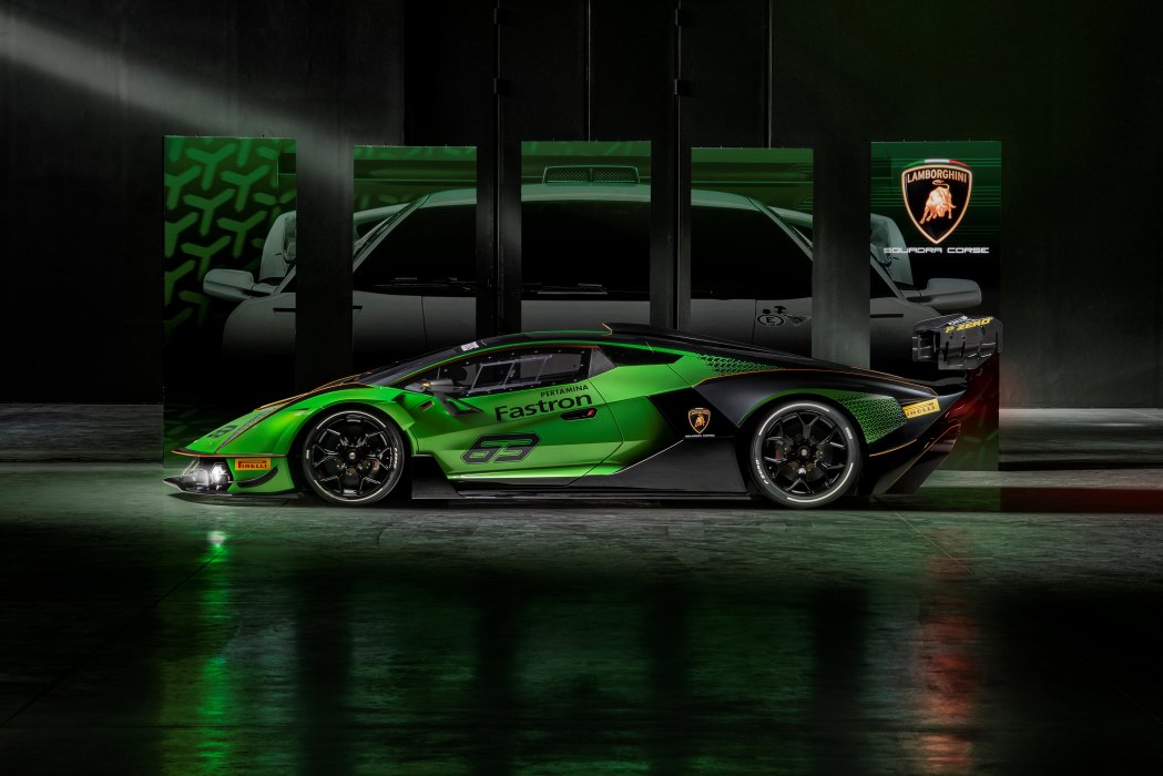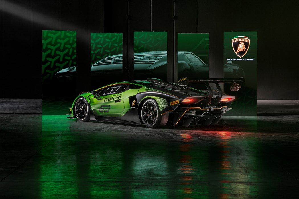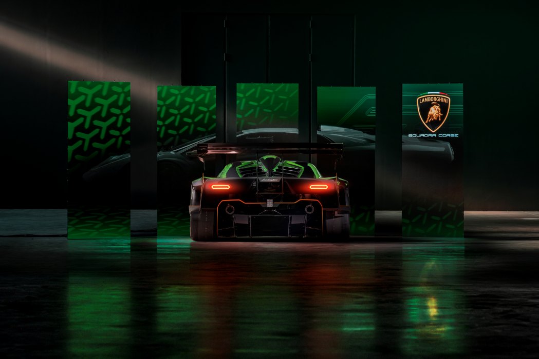 La aerodinámica es fruto de la experiencia de Lamborghini Squadra Corse en las competiciones de GT y garantiza un nivel de eficiencia y carga aerodinámica superior a los de un GT3, con un valor de 1.200 kg a 250 km/h.