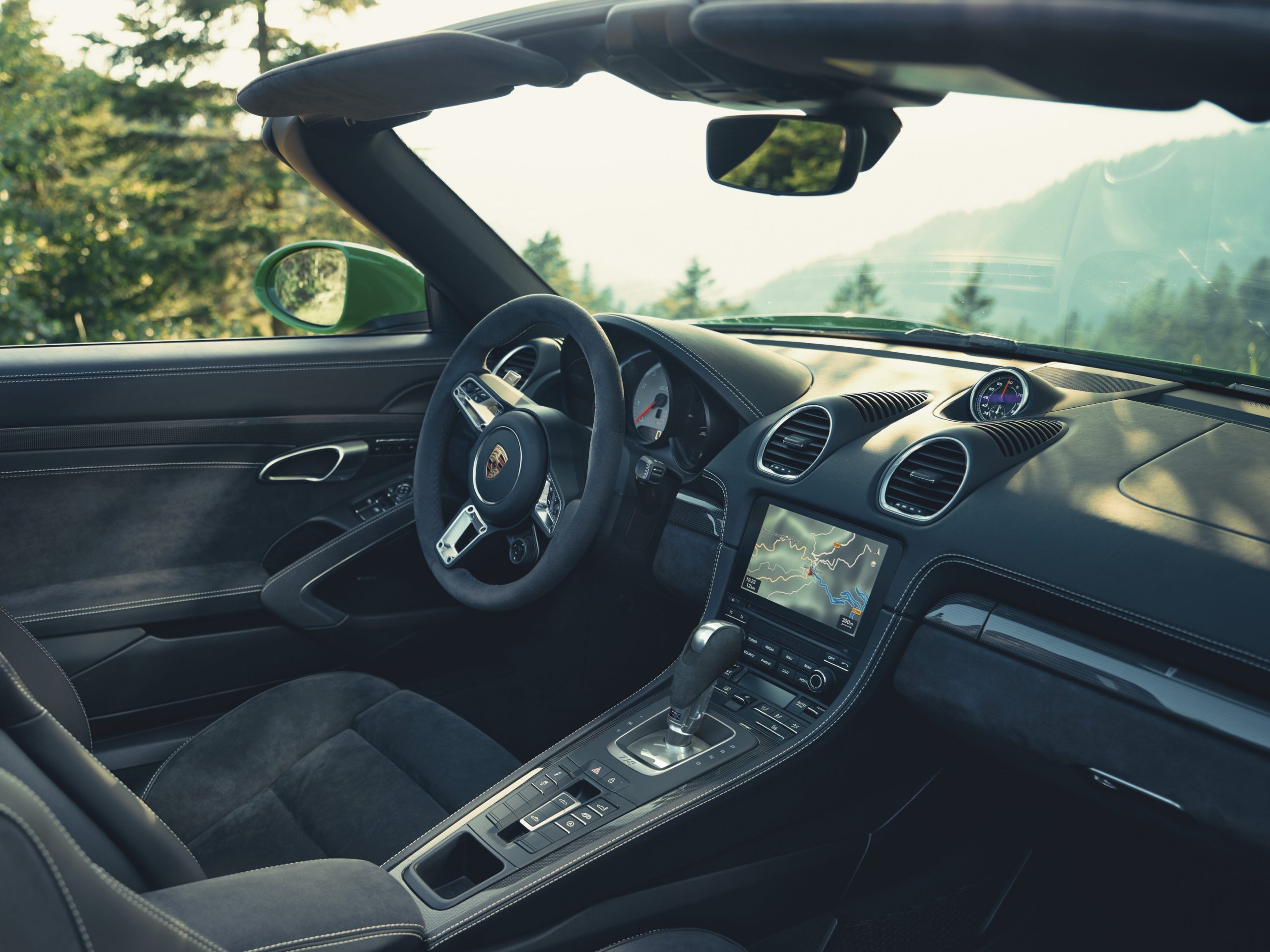 En los 718 Spyder y 718 Cayman GT4, el selector del cambio automático imita el diseño del que lleva el 911 GT3, lo que subraya el ambiente racing del vehículo. Ambos modelos se pueden configurar para obtener las máximas prestaciones a través del botón Sport del PDK. La séptima marcha de esta transmisión PDK tiene un desarrollo más corto en todas las versiones del 718 con motor atmosférico de cuatro litros.