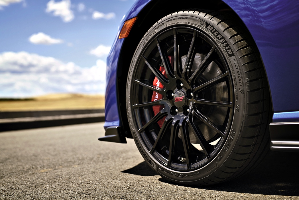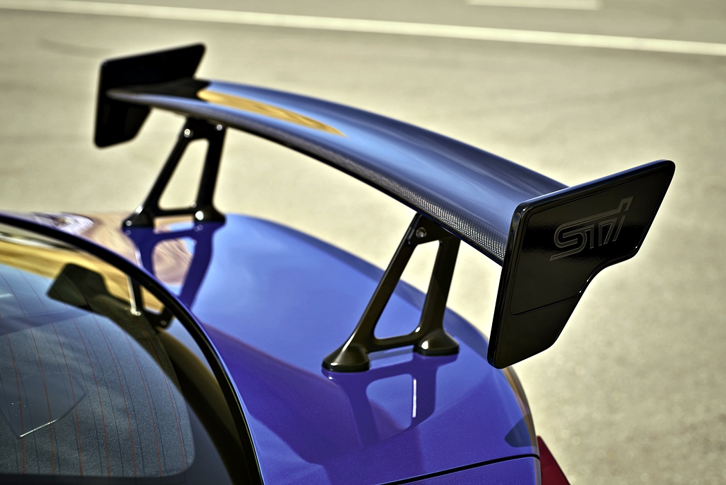 El diseño exterior también muestra un aspecto más agresivo con un spoiler trasero de fibra de carbono firmado por STI, que se puede ajustar manualmente para regular la carga aerodinámica. Los nuevos spoilers delanteros, traseros y laterales de STI contribuyen a controlar el flujo de aire para una mejor tracción y estabilidad.