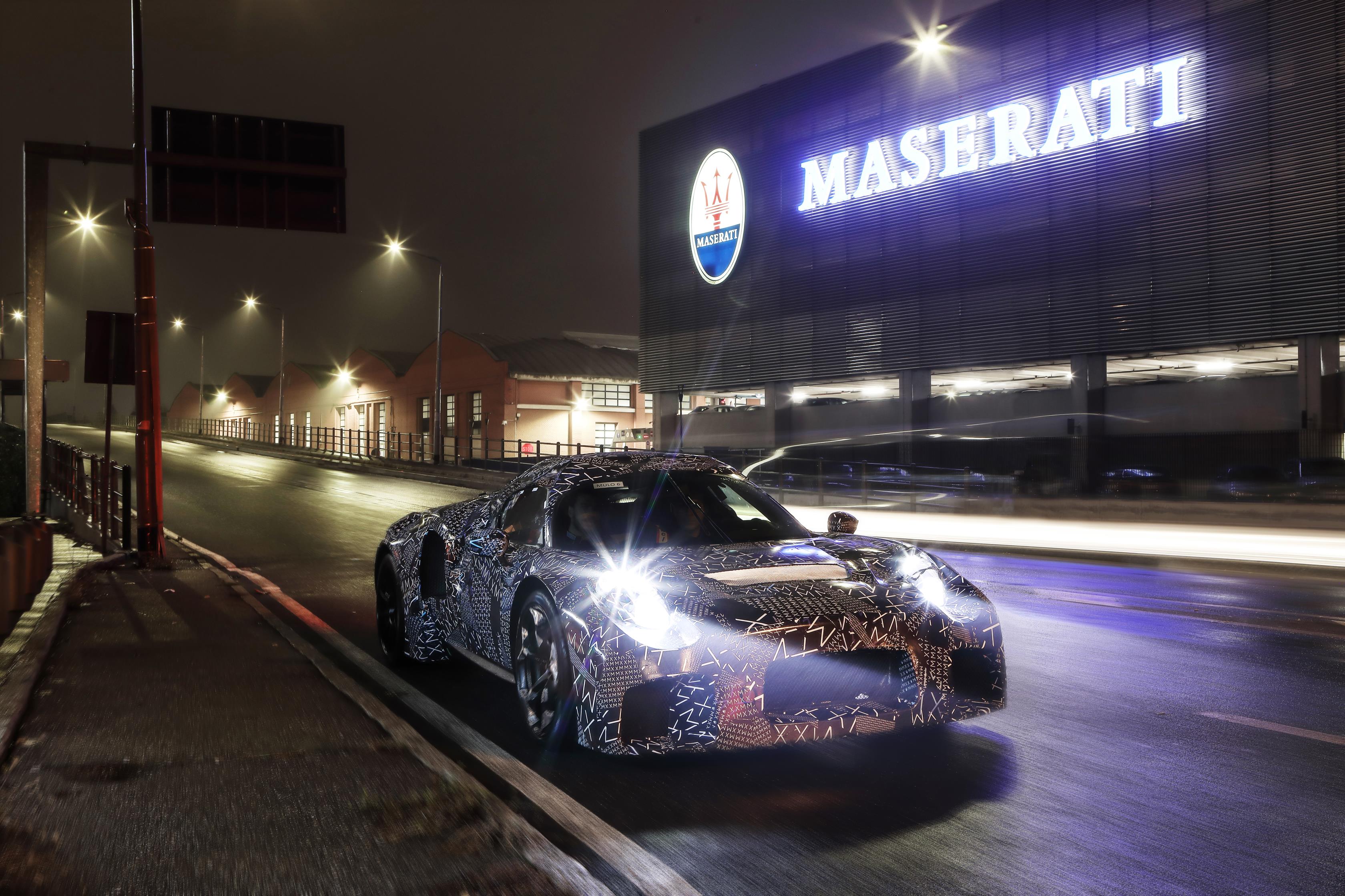 La primera mula para el desarrollo del nuevo motor Maserati ha salido hoy por las puertas de Viale Ciro Menotti en Módena.