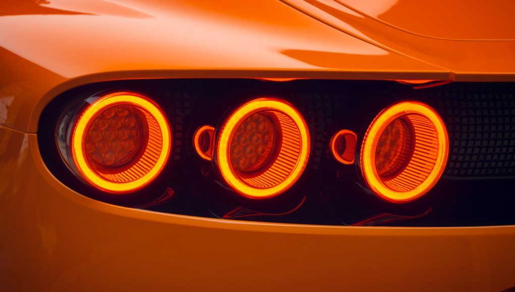 La carrocería del vehículo descansa visualmente sobre una potente estructura de suelo que se extiende desde el divisor delantero a lo largo de las hojas de los umbrales hasta el difusor trasero. Los voladizos delanteros y traseros subrayan las icónicas proporciones generales. El carácter dinámico también se expresa en la extravagante pintura en color naranja sunset beam. Gracias a su composición especial, las superficies brillan con la luz como el metal líquido.