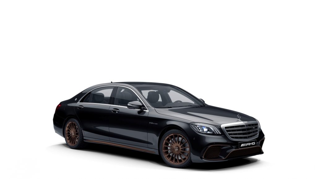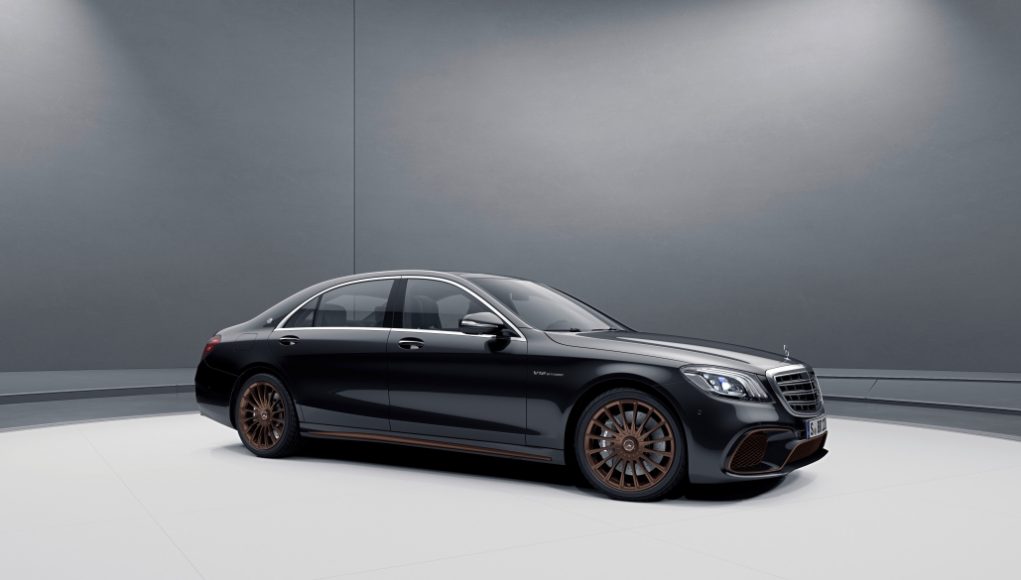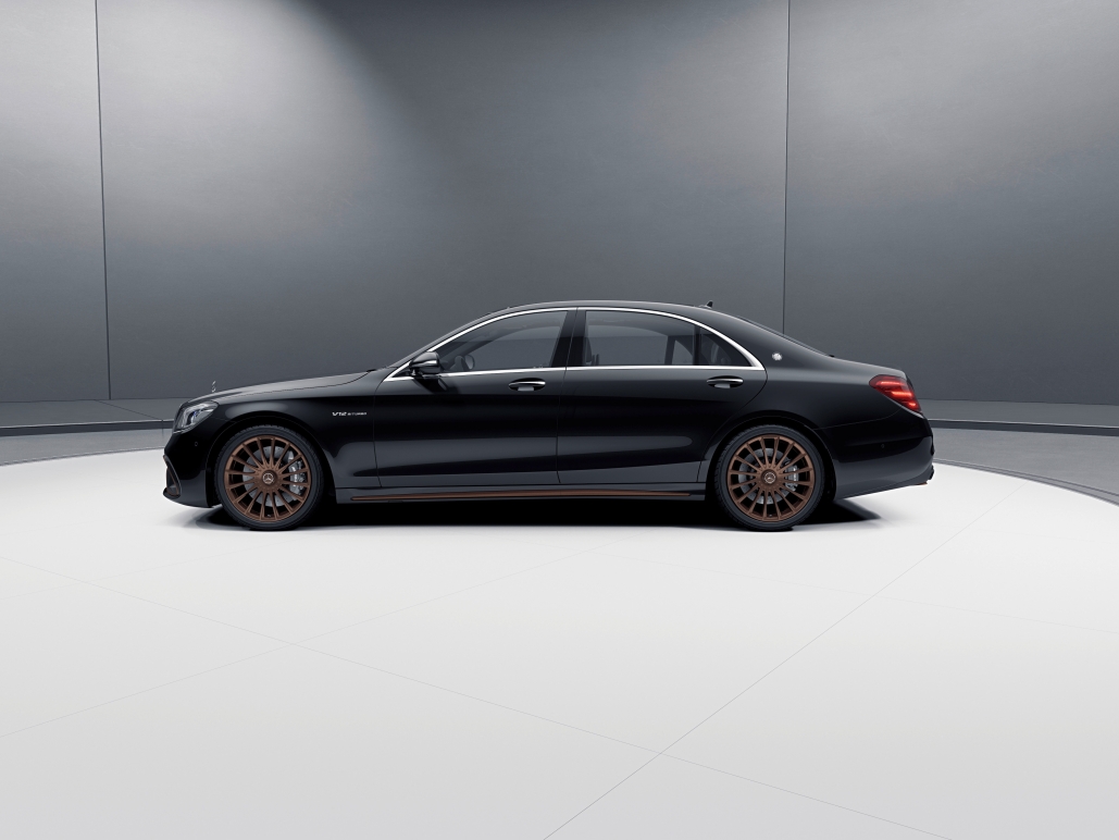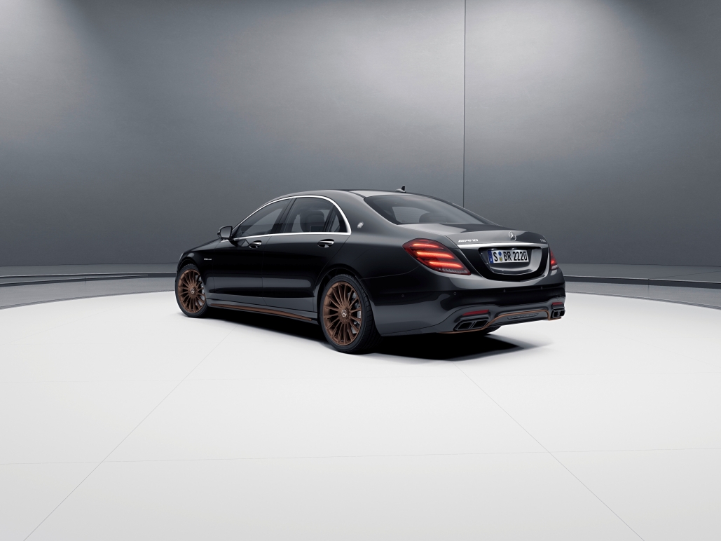 El modelo S 65 Final Edition está disponible exclusivamente con pintura metalizada negro obsidiana de alto brillo. Las llantas de 20 pulgadas en diseño multirradio y las rejillas de entrada de aire en el color especial bronce mate subrayan, en combinación con el emblema AMG sobre el montante C, el carácter singular de la berlina. Los embellecedores de la salida de escape en negro de alto brillo ponen un broche final adecuado.