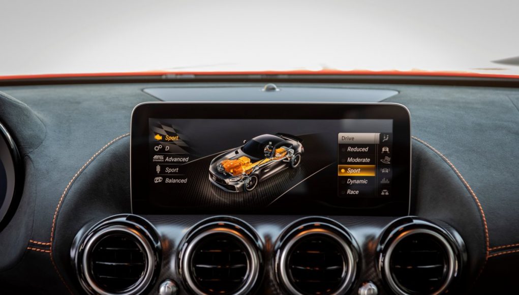 El AMG GT Black Series equipa los visualizadores de instrumentos completamente digitales de la familia AMG GT, con cuadro de instrumentos de 12,3 pulgadas delante del conductor y monitor multimedia de 10,25 pulgadas en la consola central. Es posible personalizar el diseño del cuadro de instrumentos eligiendo uno de los tres estilos de visualizado específicos de AMG «Clásico», «Deportivo» y «Supersport». La vista «Supersport» con cuentarrevoluciones central añade a los datos habituales información adicional como, por ejemplo, una invitación a cambiar a una marcha superior en el modo manual de cambio (la denominada función «Shiftlight»). Las imágenes en el visualizador de medios recrean con mayor realismo otras funciones del vehículo. Por ejemplo, representaciones animadas de los sistemas de asistencia a la conducción, sistemas del vehículo y de comunicación.