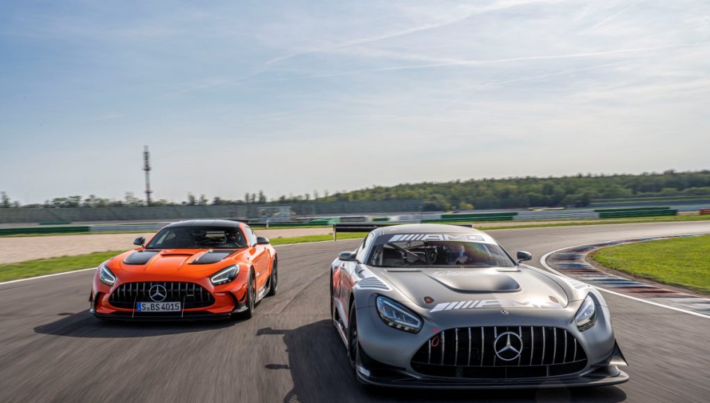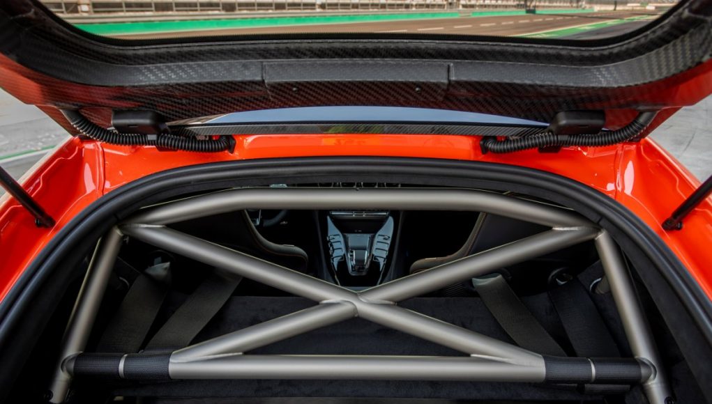 Opcionalmente se ofrece en muchos mercados el paquete AMG Track (solo en combinación con los asientos AMG tipo baquet de fibra de carbono, no para EE.UU., Canadá y China). Este conjunto de equipos consta de un sistema de protección en caso de vuelco, cinturones de seguridad de 4 puntos para conductor y acompañante y un extintor de 2 kg (ambos equipos concebidos exclusivamente para el uso en circuitos de competición). La jaula de tubos de titanio de bajo peso del sistema de protección en caso de vuelco se sujeta por medio de tornillos y consta de un arco principal, un brazo de sujeción para el cinturón, dos refuerzos traseros y una cruceta diagonal trasera. Este sistema refuerza la ya excelente rigidez del vehículo, con las consiguientes ventajas en términos de dinamismo de conducción. Además, mejora la seguridad pasiva.