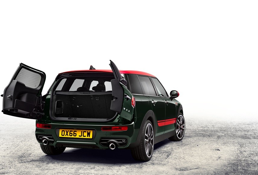 Las propiedades de marcha extraordinariamente deportivas y a la vez diversas del nuevo MINI John Cooper Works Clubman van acompañadas de diferentes aplicaciones prácticas que resultan de un concepto de carrocería inconfundible. Cuatro puertas laterales y las características Split Doors en la zaga, cinco plazas apropiadas para personas adultas y una capacidad del maletero que se puede aumentar de 360 a 1250 litros plegando el respaldo del asiento trasero le proporcionan una gran presencia incluso parado. Aquí se combina la interpretación moderna del concepto Shooting-Brake lleno de tradición que dentro de la gama de modelos de la marca proporciona los mejores valores en materia de funcionalidad con un desafiante carácter deportivo.