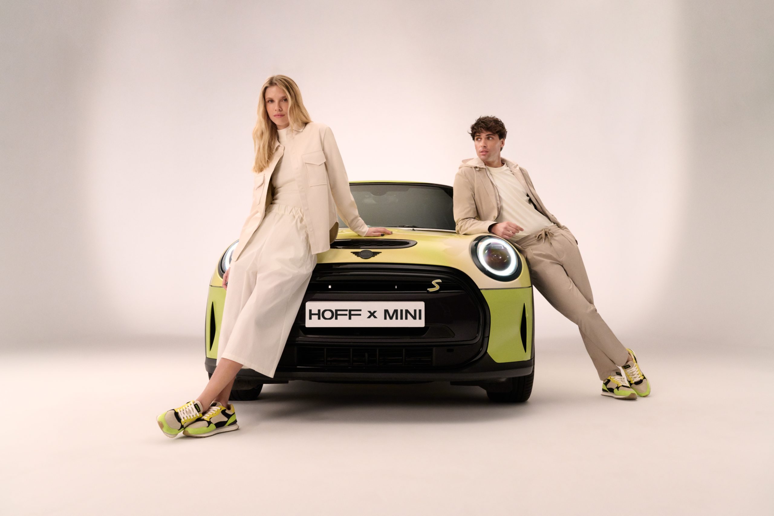 Ya están disponibles para su compra en el mercado la edición de zapatillas HOFFxMINI, y, además, como ganadora del concurso de innovación artística, Carlota Huertas podrá disfrutar de un año de cesión del MINI 100% Eléctrico vinilado con su diseño.
