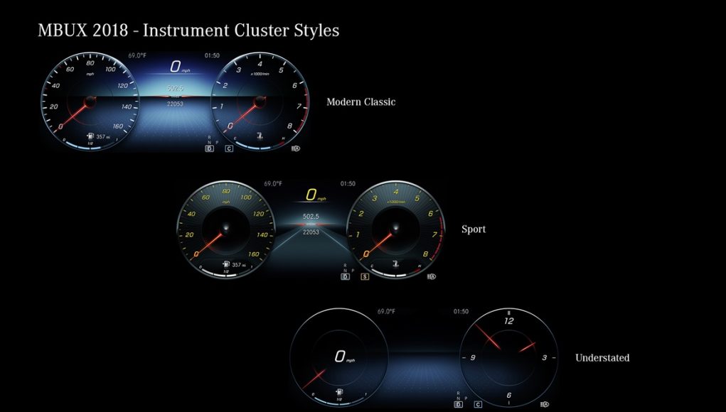 Otros puntos fuertes, en función del equipamiento, incluyen el puesto de conducción widescreen de alta resolución con manejo por pantalla táctil en el visualizador de medios, la pantalla de navegación con tecnología de realidad aumentada y el mando fónico inteligente con reconocimiento de voz natural, que se activa con la palabra clave «Hey Mercedes». También está disponible el Head-up-Display. La pantalla táctil del MBUX es sólo un componente del concepto de manejo táctil integral: la combinación de pantalla táctil, panel táctil en la consola central y botones de control táctil en el volante.
