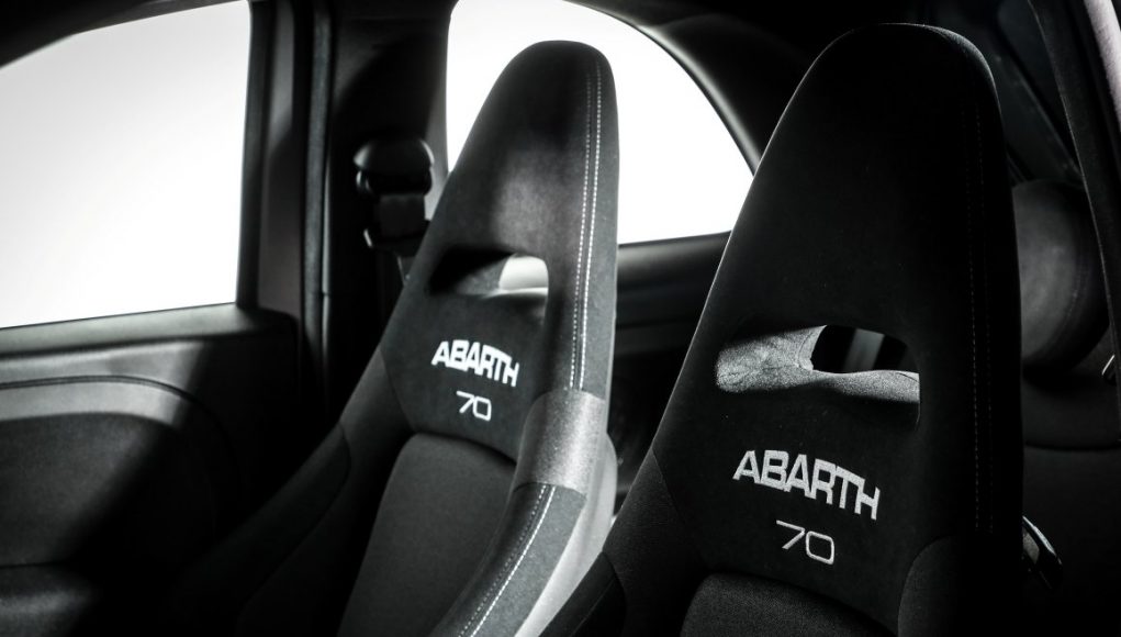 La gama de colores del nuevo Abarth 595 Pista incluye el Gris Mate, además del Gris Record, Gris Campovolo, Negro Scorpione, Azul Podio, Blanco Gara, Rojo Abarth, Amarillo Modena y Verde Adrenalina. En el exterior, el nuevo kit Adrenalina presenta detalles de color verde en las inserciones de los paragolpes delantero y trasero y en las carcasas de los retrovisores. El acabado de los embellecedores de las ruedas también es verde. En la nueva tapicería se plasma la estética interior con patrones de rombos en los asientos deportivos de serie o un genuino look de carreras en los asientos Sabelt 70, estos últimos disponibles como opcional.